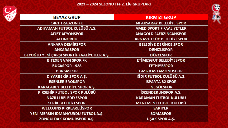 TFF 2. Lig Grup Kura Sonucu için tıklayınız
