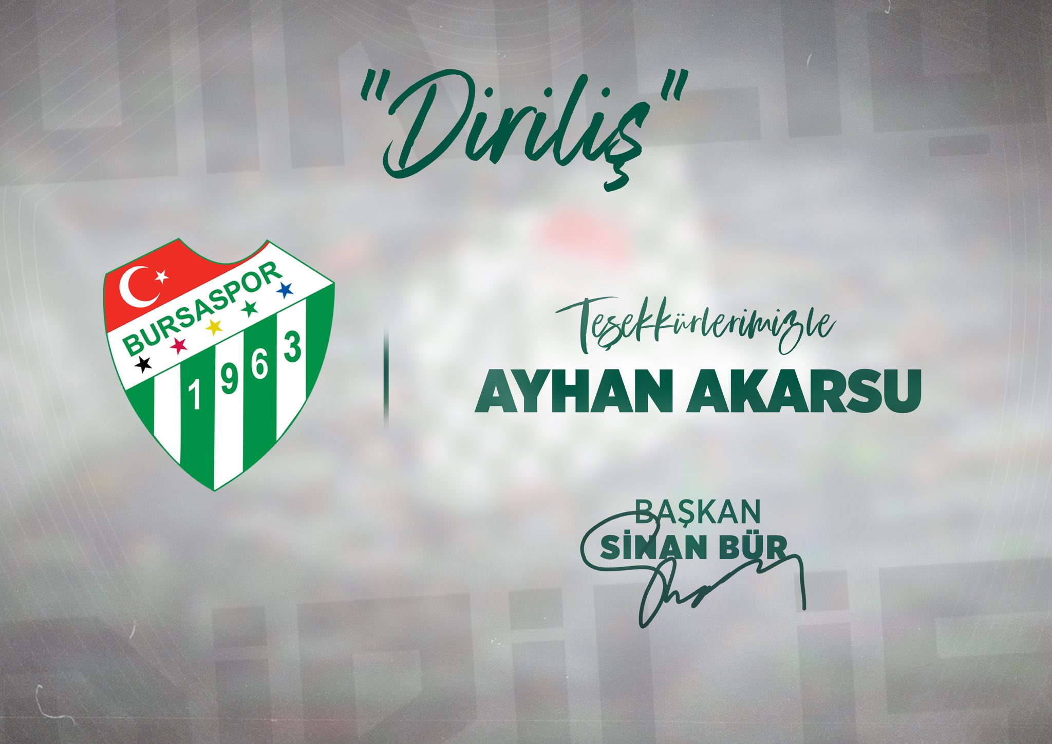 Ana Sayfa › Final › Bursaspor › Bursaspor’un ‘Diriliş’ kampanyasına bir destek daha!Bursaspor’un ‘Diriliş’ kampanyasına bir destek daha! Yeşil beyazlı kulüp, Ayhan Akarsu için teşekkür mesajı yayınladı… Giriş: 05-02-2024 15:00Kaynak: HABER MERKEZİ BursasporFinal ABONE OL + - Bursaspor Kulübü’nün teşekkür mesajı şöyle; “Diriliş” kampanyamıza desteklerinden dolayı sayın Ayhan Akarsu’ya teşekkürlerimizi sunuyoruz. HABERİ PAYLAŞ