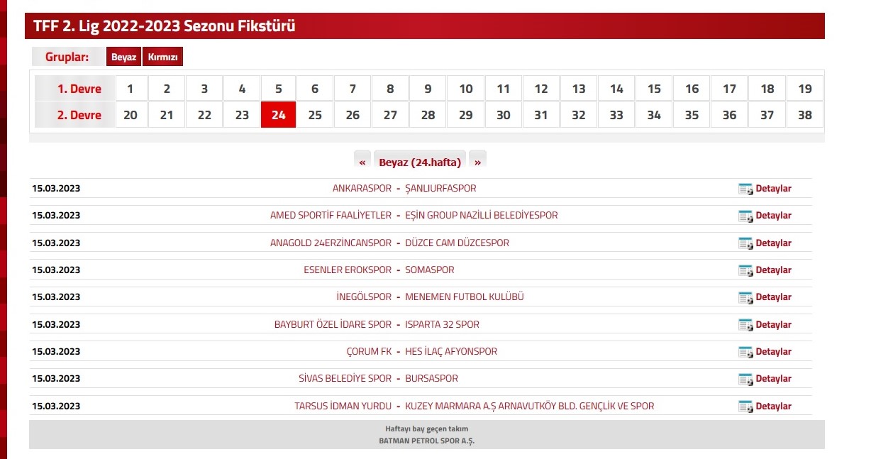 TFF internet sitesine göre Bursaspor, 24. haftada ise 15 Mart Çarşamba günü deplasmanda Sivas Belediyespor ile karşı karşıya gelecek.