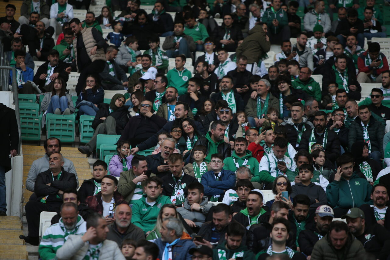 Bursasporlu taraftarlar takımlarını yine yalnız bırakmadı. Ramazan günü olmasına rağmen Atatürk Spor Kompleksi Matlı Stadyumu’na akın eden 36 bin 770 yeşil beyaz sevdalısı takıma büyük destek oldu.