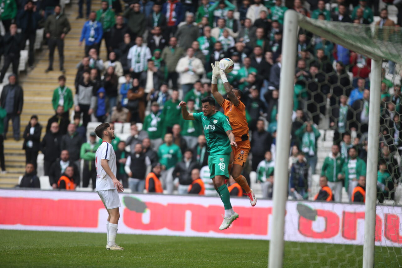 Bursaspor, kalan dakikalarda öne geçecek golü bulamayınca sahadan 1-1 eşitlikle ayrıldı ve 2 puanı sahasında bıraktı.