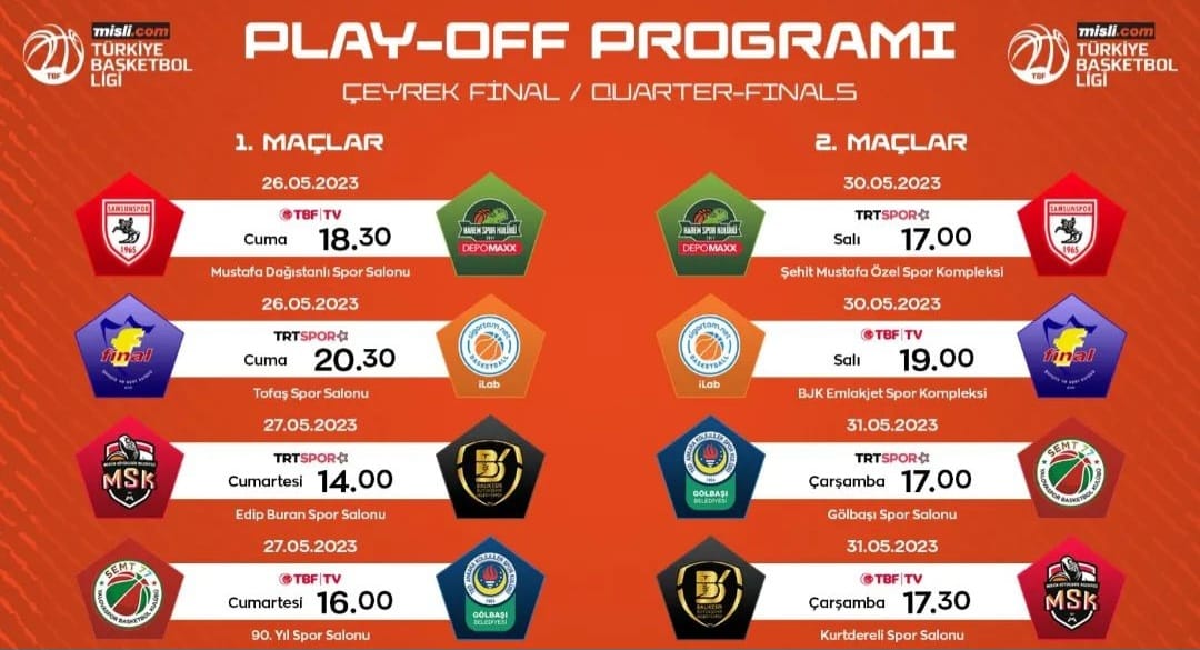 Bu güzel sohbet için çok teşekkürler. Play-off’ta saha avantajının rakiplerde olduğu ve iki maç kazananın turu geçeceği; Frutti Extra Bursaspor-Pınar KSK ve Tofaş-Fenerbahçe Beko, TBL’de de Finalspor-Sigortam.Net serilerinde şehrimizin takımlarına bol şanslar diliyorum.