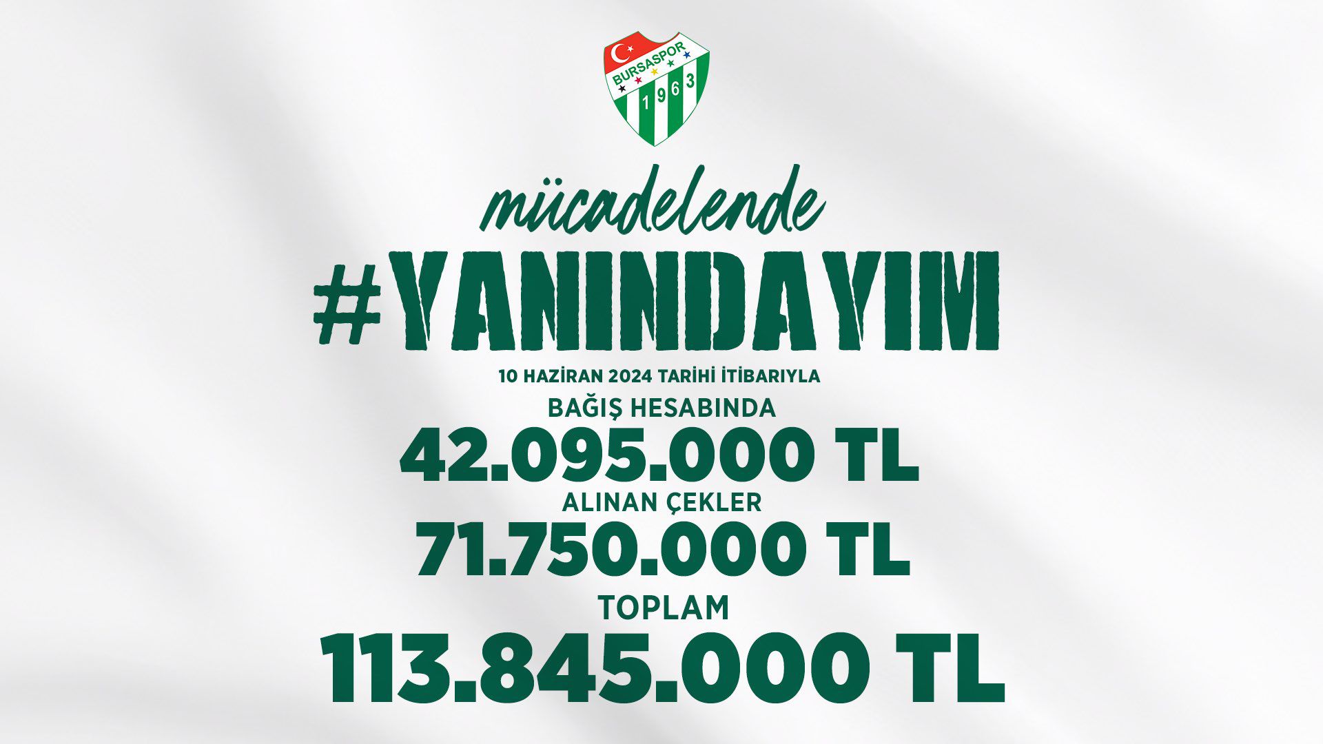 Bursaspor Kulübü’nün ‘Yanındayım’ kampanyasının 14. gününde son rakamlar paylaşıldı.