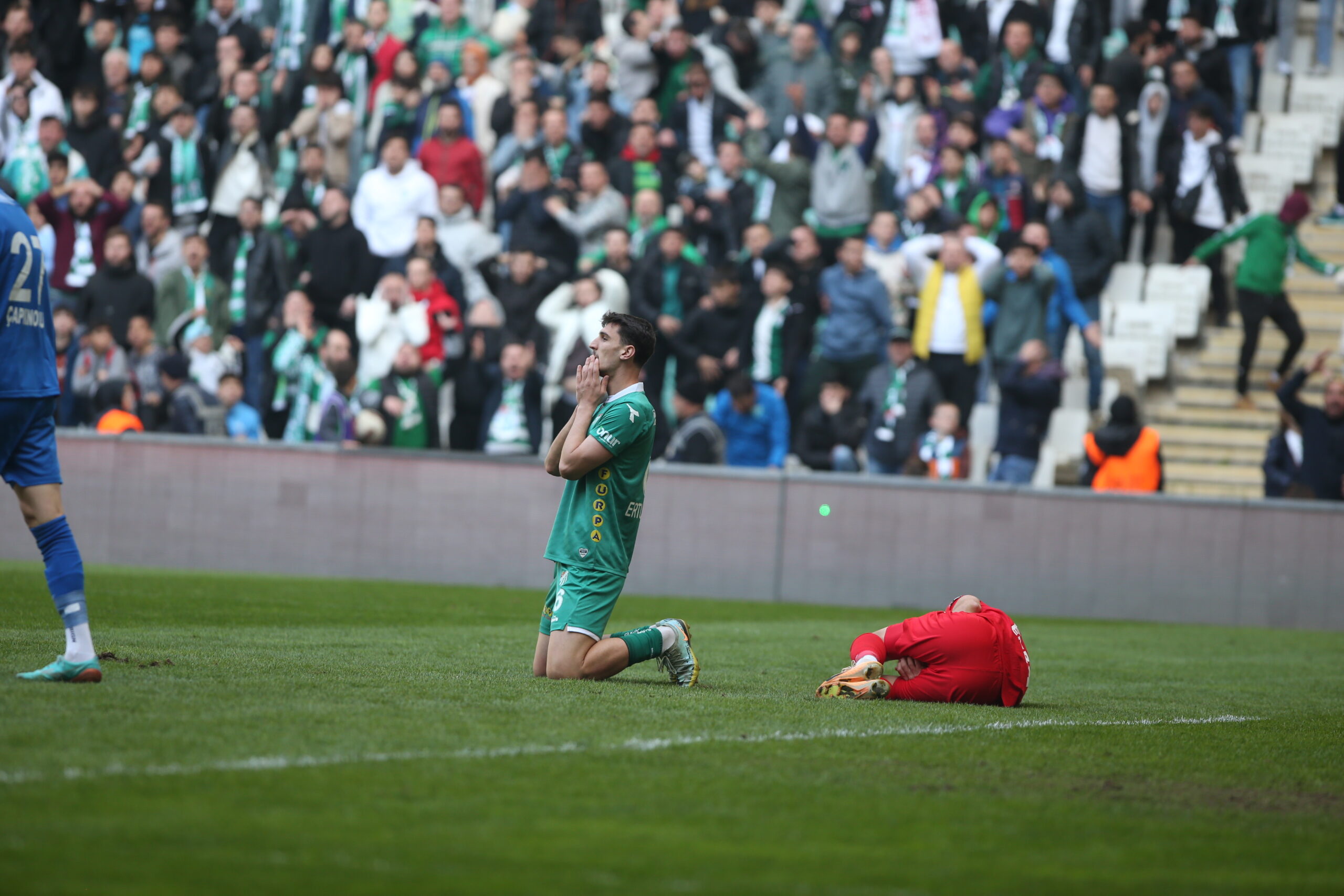Sakatlık nedeniyle 3 değişiklik yapmak zorunda kalan Bursaspor’un 76. dakikada Ömer Turan’ın ceza sahası içinde tekmeyle yere indirilmesiyle buz gibi penaltısını es geçen hakem Erdem Temel 61 yıllık Koca Çınar’ın kaderiyle oynadı.
