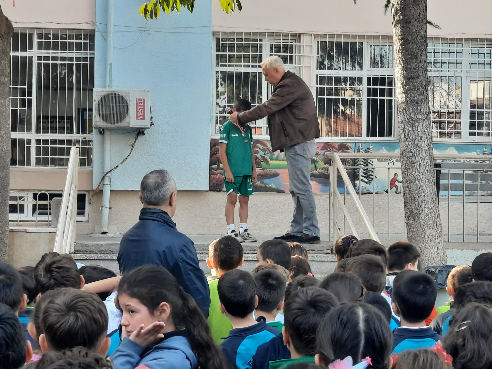 Aynı zamanda Bursaspor Kongre Üyesi de olan Okul Müdürü Arif Savaş, turnuvadan şampiyonlukla dönen Ali Mirza’ya madalya ve hediye takdim etti.