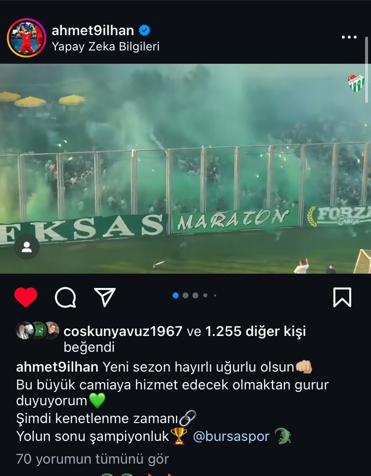 Bursaspor’un yeni transferlerinden Ahmet İlhan Özek, yeşil beyazlı camiaya mesaj gönderdi.