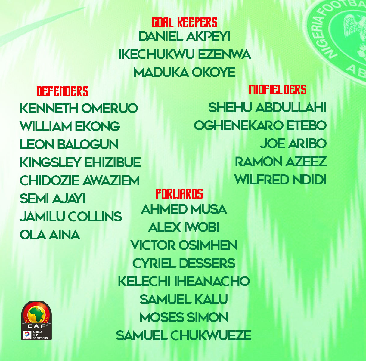Afrika Uluslar Kupası elemelerinden mücadele eden Nijerya Milli Takımı’nın 24 kişilik aday kadrosu açıklandı…