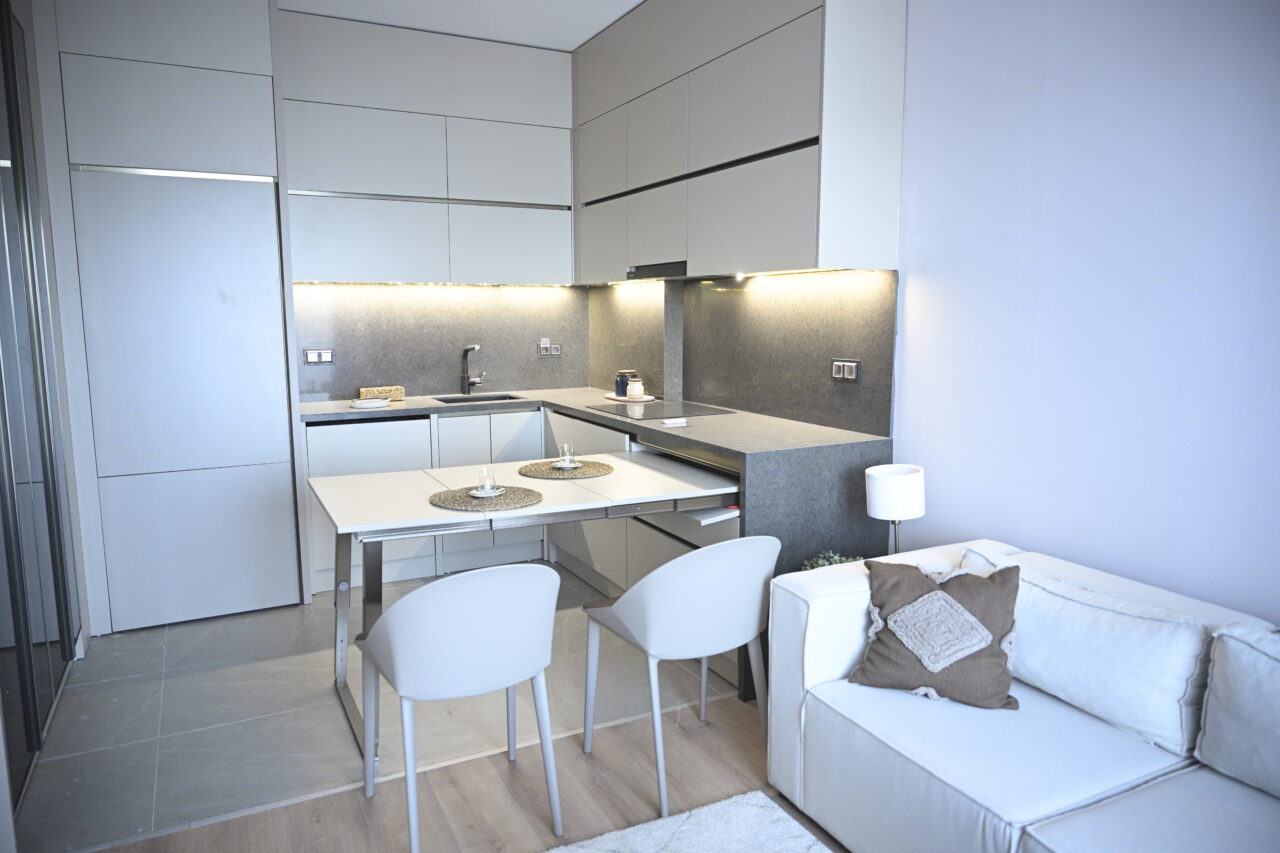 Kiler dolabı, ebeveyn banyosu, duşa kabin gibi detayların dikkati çektiği örnek dairelerde mutfak, bir arada ya da ayrı olarak inşa edildi.
