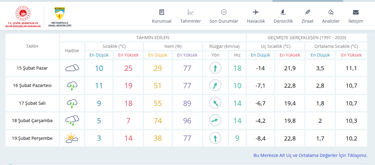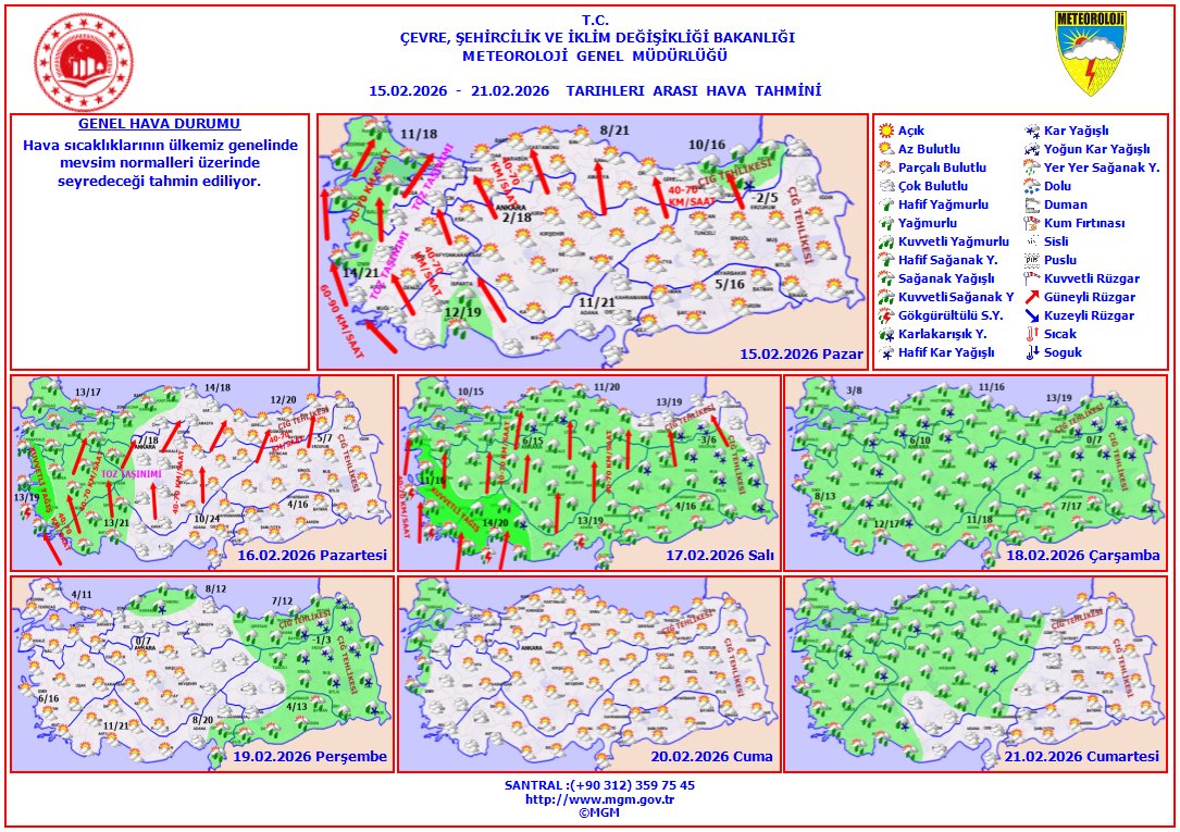 Meteoroloji Genel Müdürülüğü’nün bir haftalık tahminleri