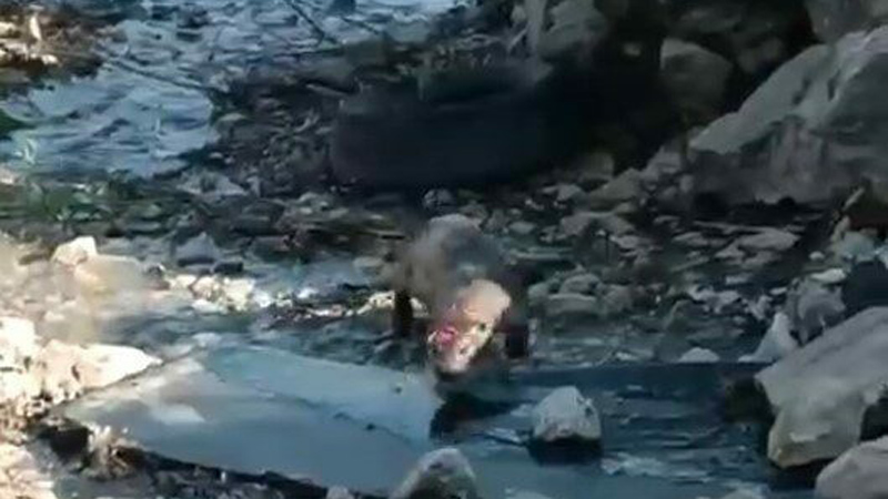 Tavukları peşine takan su samuru mahallede kısa bir tur attı. Bu sırada yaralı samuru farkeden çocuklar onu önce fare sandı.