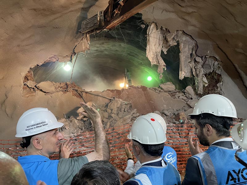O tünellerden biri olan, yaklaşık 500 metre uzunluğundaki T4 tünelimizde bugün ışığı göreceğiz. Toplam uzunluğu 14 kilometre olan tünellerimizin, 5 aylık süre zarfında 3,2 kilometresini tamamladık. T4 Tünelimizin kazı çalışmalarında; 612 bin metreküplük toprak hareketi gerçekleştirdik 140 bin metre zemin iyileştirmesini tamamladık. Diğer tünellerimizdeki çalışmalarımızı da kısa zaman içerisinde peş peşe tamamlayacağız. Altyapıya yönelik çalışmalarımız sürerken, üstyapıyla ilgili hazırlıklarımızı da sürdürüyoruz. Çalışmalarımızı hız kesmeden 7/24 sürdürerek, 2,5 yıl içerisinde bitireceğiz. Yıllık 30 milyon yolcu ve 59 milyon ton yük taşıyabilecek olan hızlı tren projemiz, yapım sırasında ve işletmeye alındığında; bölgemiz ve ülkemiz için refah, istihdam, ekonomik kalkınma sağlanacak.