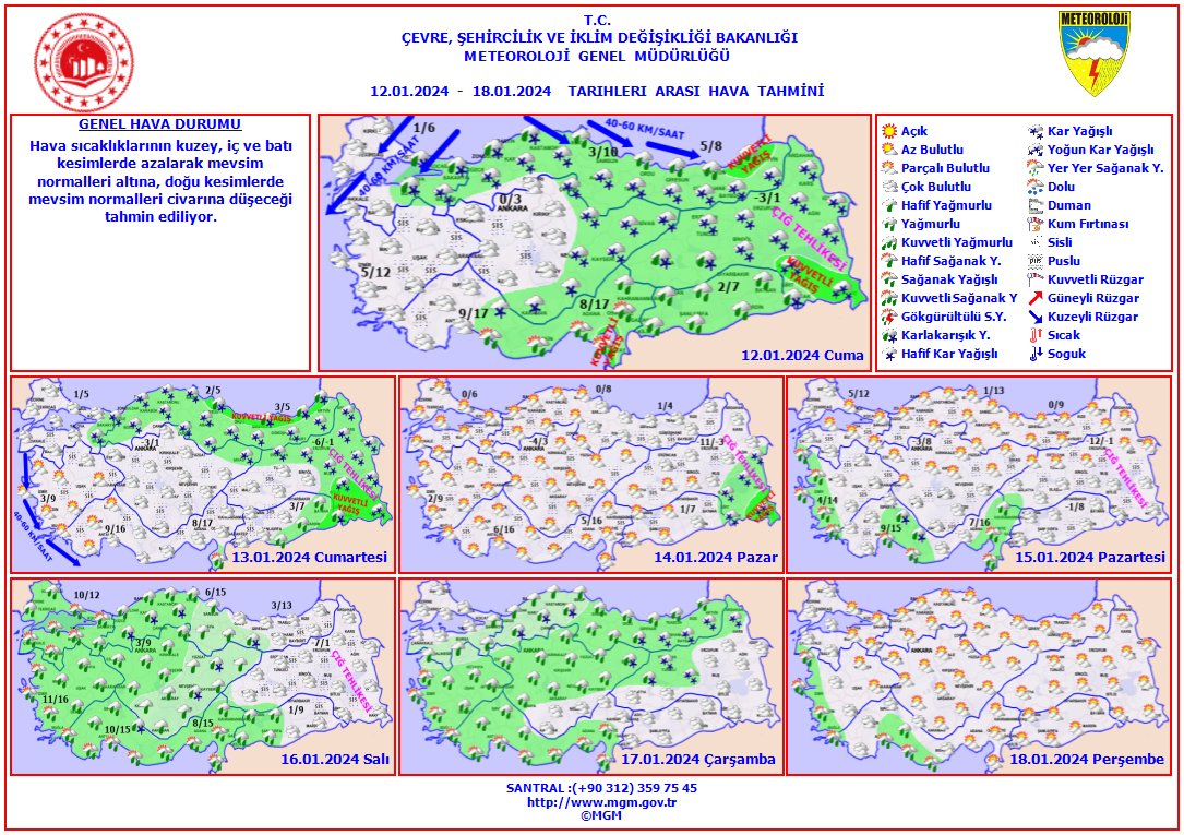 Türkiye geneli haftalkık hava tahminleri şöyle;