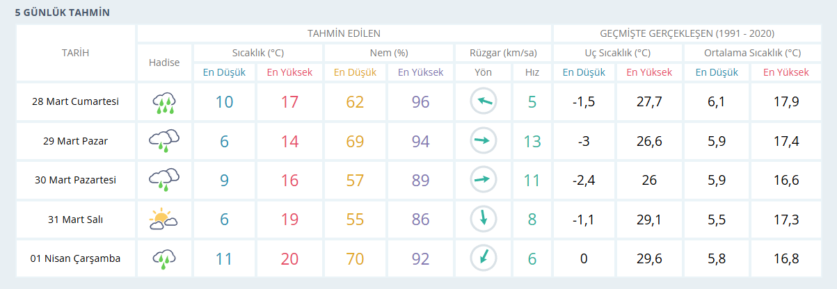 İşte Meteoroloji Genel Müdürlüğü’nün Bursa için yayınladığı 5 günlük hava tahmin raporu: