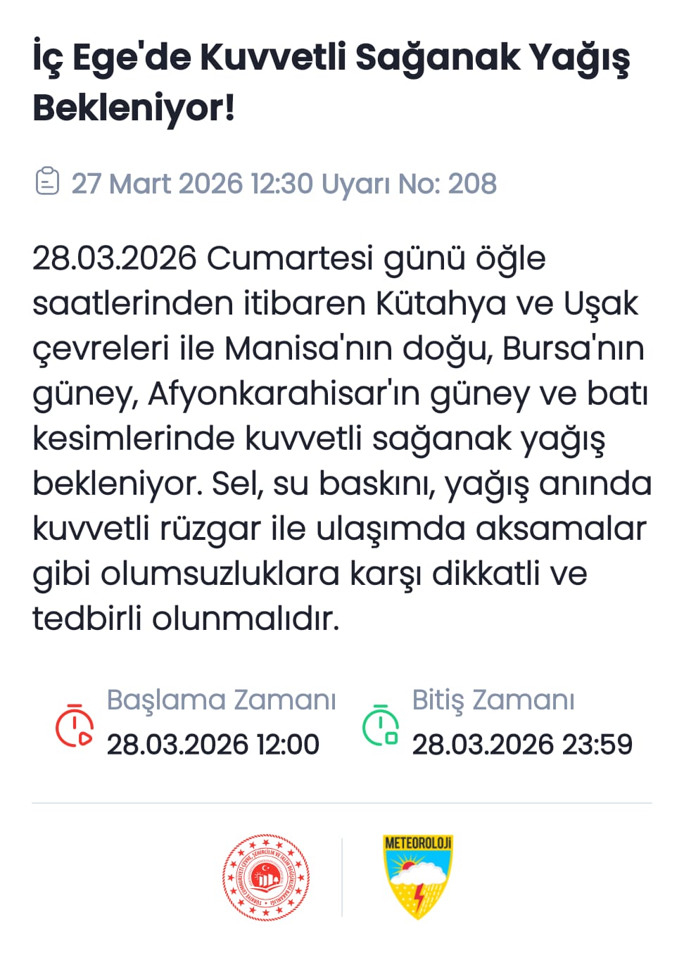 Meteoroloji Genel Müdürlüğü’nden yayınlanan rapora göre Bursa, hafta sonu sağanak yağışın etkisi altına girecek.