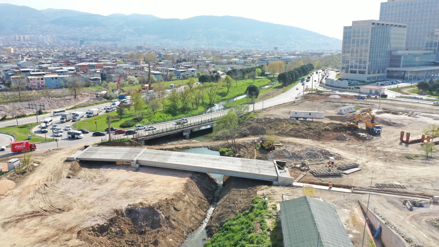 Bursa’da ulaşım sorununun ortadan kaldırılması amacıyla yol genişletme ve yeni yollar, akıllı kavşaklar, toplu ulaşımı teşvik, raylı sistem yatırımları gibi çalışmaları aralıksız sürdüren Büyükşehir Belediyesi, trafiğin tıkanan damarlarını yeni köprülü kavşaklarla açıyor. Yeni adliye binasının da taşınmasıyla birlikte Yakın Doğu Çevre Yolunun İstanbul Caddesi’ne bağlantı noktasındaki trafik yükü her geçen gün artarken, Büyükşehir Belediyesi bu sorunu iki luplu kavşak ile çözüme kavuşturuyor. Yaklaşık iki hafta önce temeli atılan proje çerçevesinde, 3 açıklıklı 117 metre uzunluğunda ve 2 açıklıklı 54 metre uzunluğunda iki köprü ile 3 bin 500 metre bağlantı yolu yapılacak.