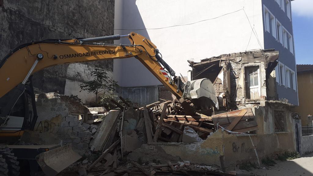 Osmangazi Belediyesi, mahalle sakinlerinin emniyeti ve sağlığı açısından risk oluşturan metruk binaları tespit edip, yapılan incelemelerin ardından tek tek yıkıyor.