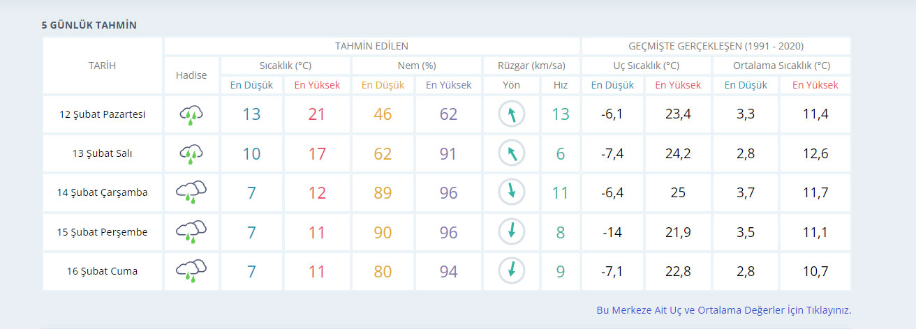 Bursa’nın 5 günlük hava durum raporu