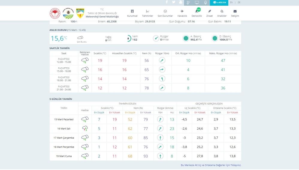 Meteoroloji Genel Müdürlüğünden alınan verilere göre, bugün Bursa yağmurlu, sıcaklık en yüksek 19, en düşük 7 derece olacak.
