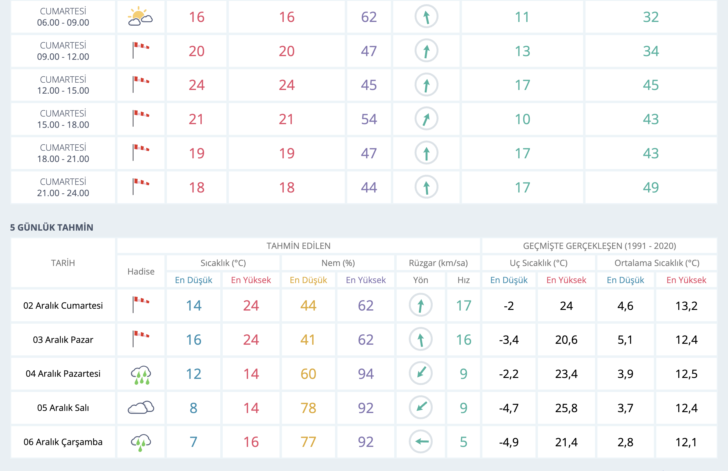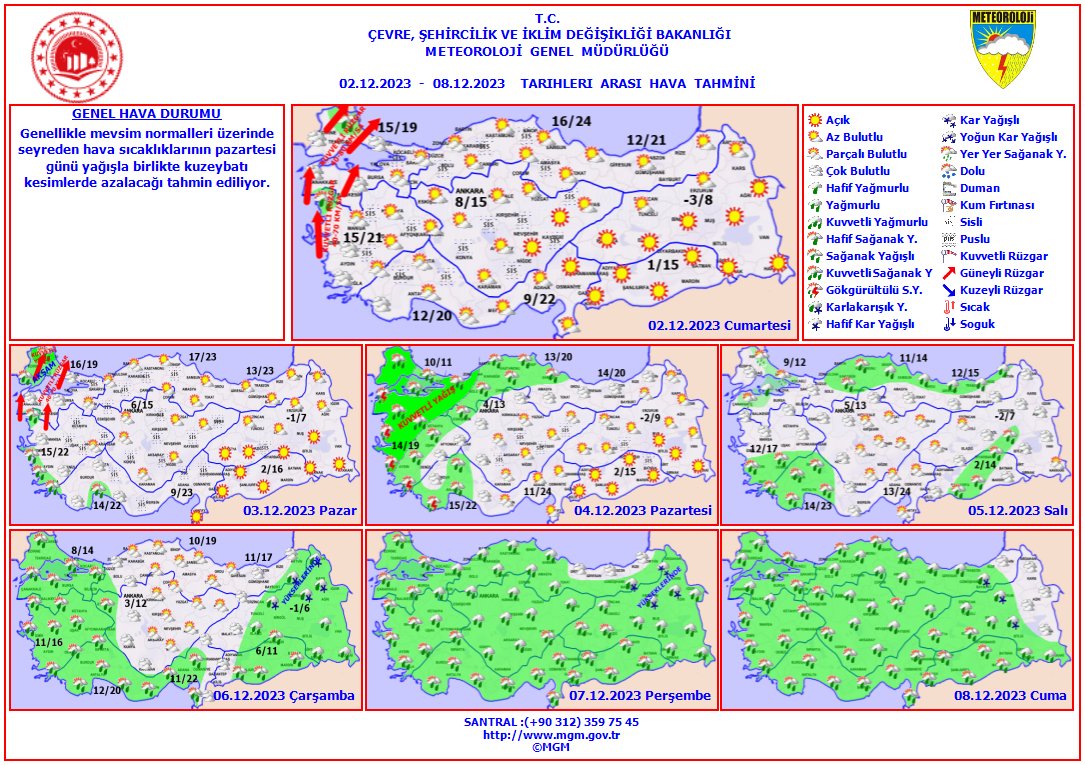 Türkiye geneli için anlık ve haftalık tahminler şöyle;