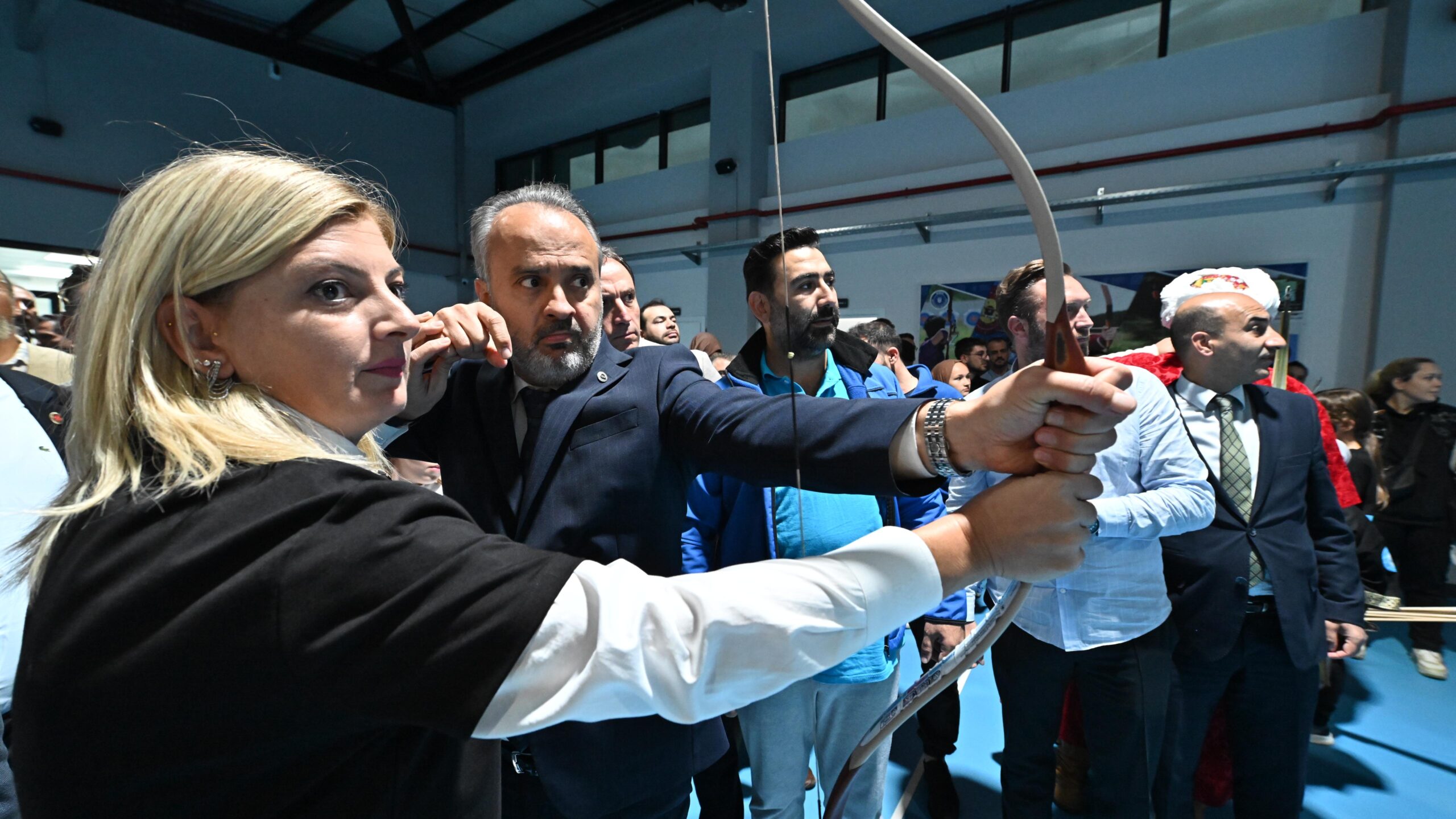 Kurdele kesilmesinin ardından tesisi gezen Başkan Aktaş ve protokol üyeleri, Büyükşehir Belediyespor Kulübü okçularının atışlarını izledi. Başkan Aktaş da eline yayı alıp, hedef tahtasına ok attı.