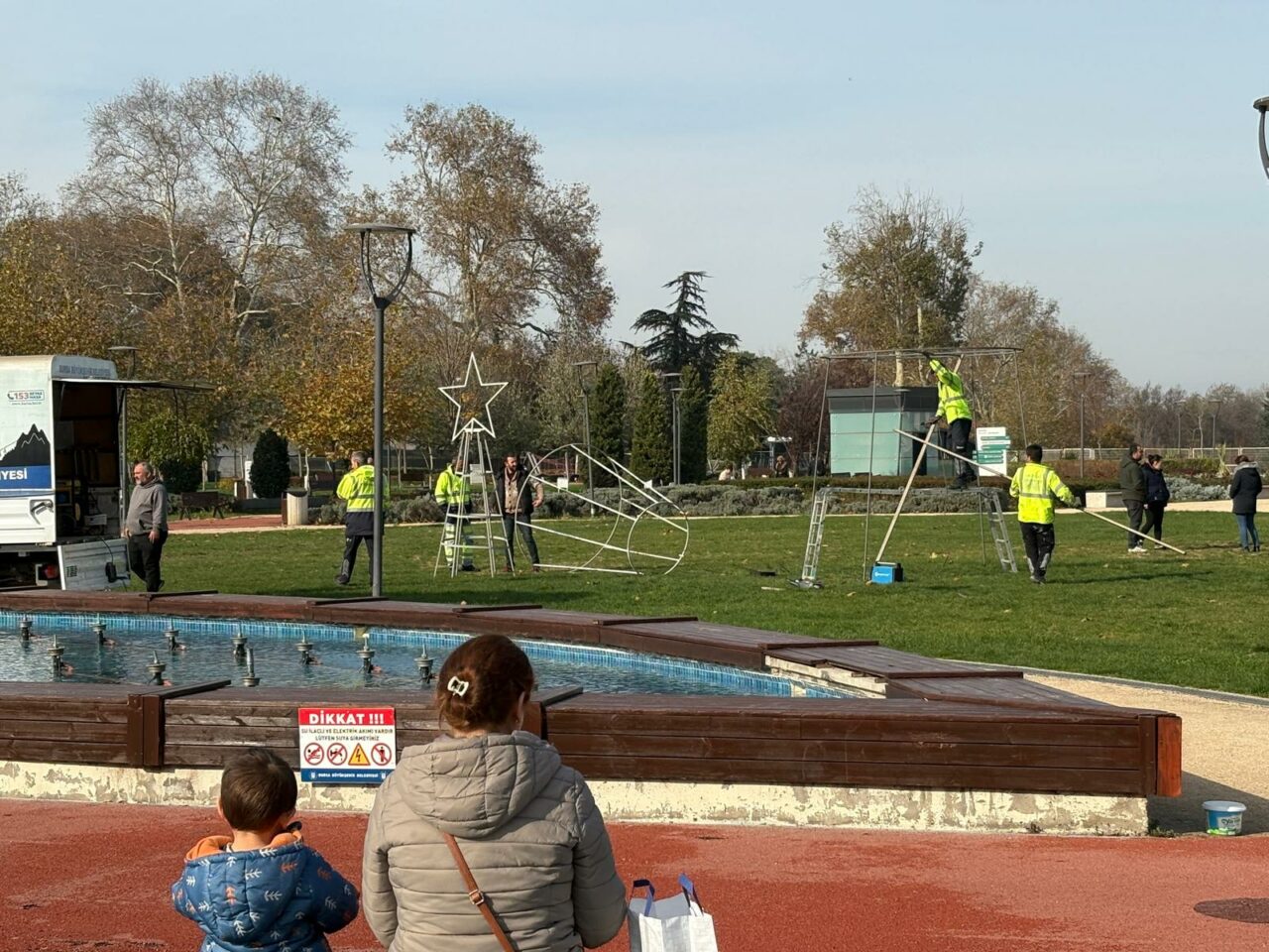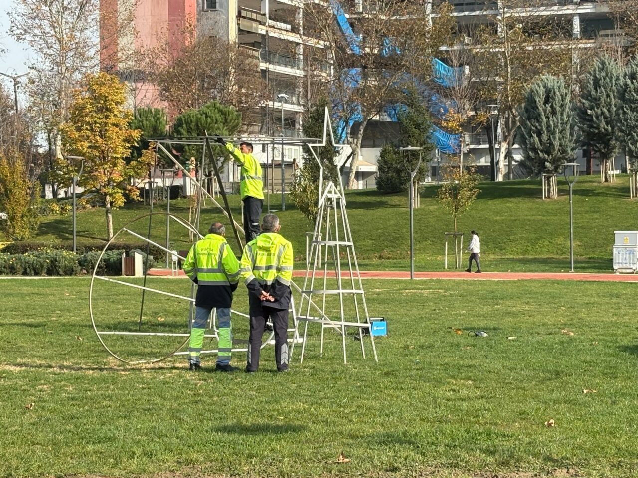 Millet Bahçesi’nde kurulumuna başlanan dev yılbaşı ağacı, vatandaşların ilgisini şimdiden üzerine çekti. Fotoğraf çektirmek isteyenlerin uğrak noktası haline gelen alanda, yeni yıl konseptli stantlar, konser alanı ve etkinlik bölümleri için zemin hazırlıkları sürüyor. Büyükşehir Belediyesi’nin açıklamasına göre kentte kurulacak yeni yıl meydanları, 13-31 Aralık tarihleri arasında ziyaretçileri ağırlamaya başlayacak.