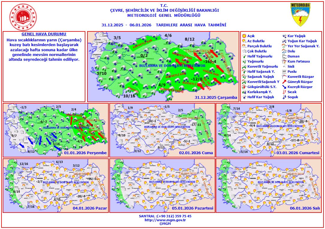 Meteoroloji Genel Müdürlüğü (MGM) tahmin raporunu güncelledi.