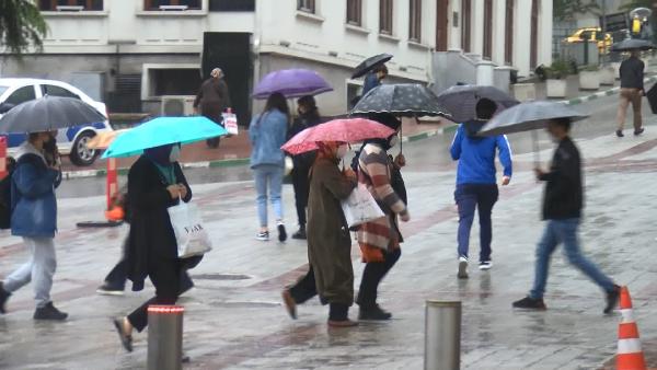 Yağmur ve doluya hazırlıksız yakalanan vatandaşlar, iş yerleri ve saçak altları ile otobüs duraklarına sığındı.