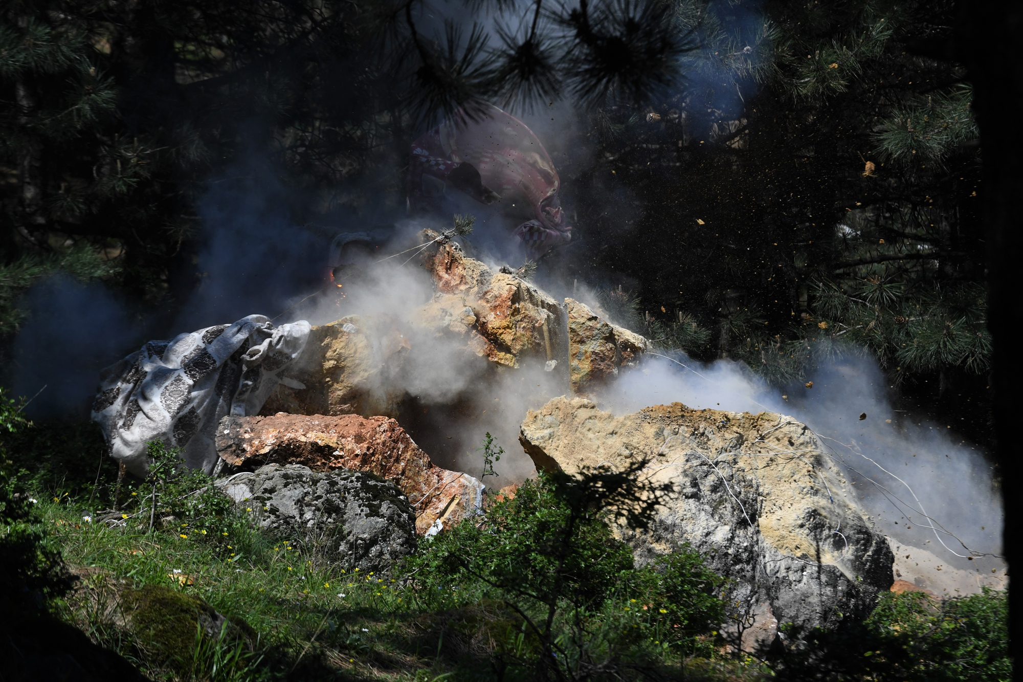 Her biri tonlarca ağırlığında bulunan dev kayalar Osmangazi Belediyesi uzman ekipleri tarafından güvenlik önlemleri alınarak patlatılarak küçük parçalar haline bölündü.