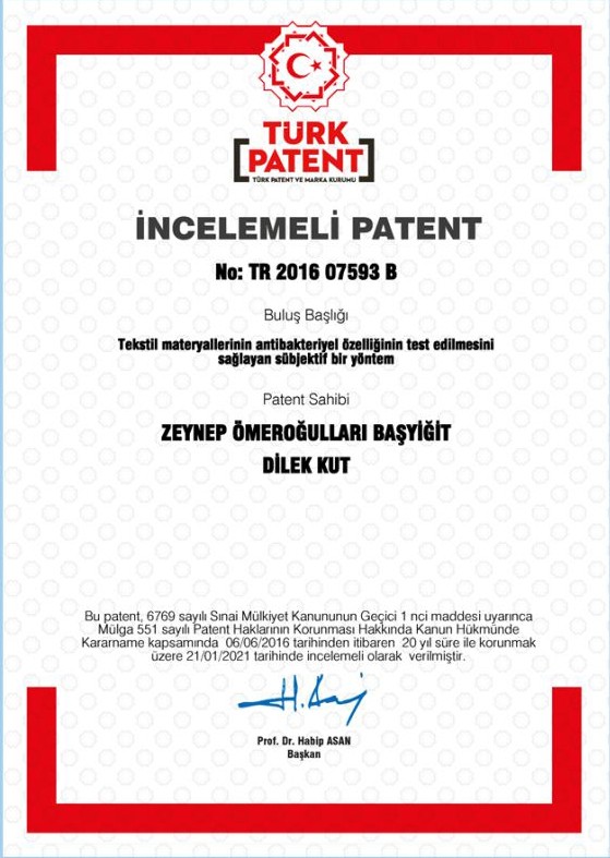 Bursa Uludağ Üniversitesi Tekstil Mühendisliği Öğretim Üyesi Prof. Dr. Dilek Kut ve İnegöl MYO Tekstil Teknolojisi Bölümü Öğretim Üyesi Doç. Dr. Zeynep Ömeroğulları Başyiğit, tekstil materyallerinin antibakteriyel özelliğinin test edilmesini sağlayan sübjektif bir yöntem geliştirerek yeni bir buluşa imza attı.
