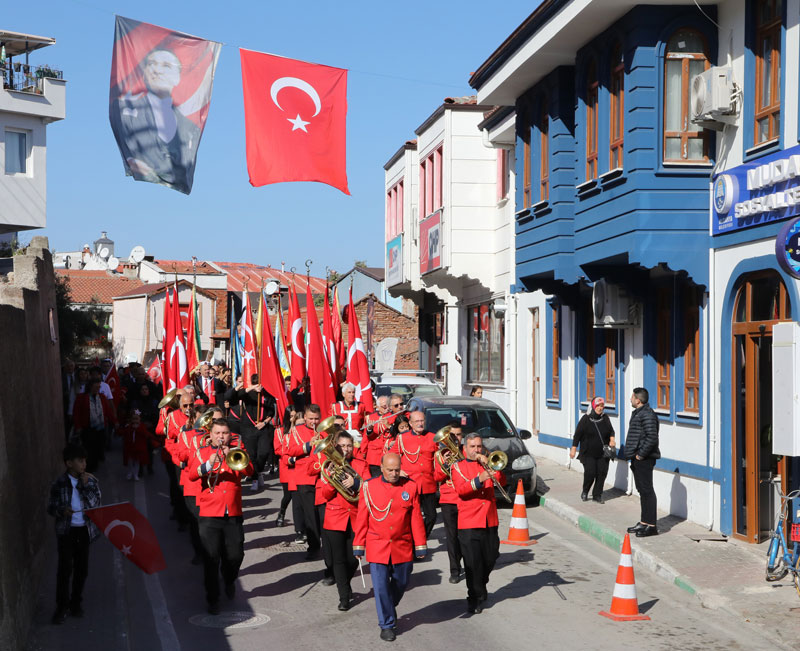 Türkiye Cumhuriyeti’nin kuruluş temellerinin atıldığı Mudanya’da Cumhuriyetin ilanının 99. yıl dönümü coşku ve gururla kutlandı. Kaymakamlık binasında tebriklerin kabulüyle başlayan kutlamalar, Kapalı Spor Salonu’ndaki etkinliklerle devam etti. Dart, voleybol, masa tenisi, satranç, resim, şiir, kompozisyon turnuva ve yarışmalarında dereceye girenlere ödülleri takdim edildi. Kutlamalar, Mudanya Kaymakamı Ayhan Terzi, Mudanya Belediye Başkanı Hayri Türkyılmaz’ın yanı sıra Mudanya protokolü, siyasi partilerin, sivil toplum örgütlerinin temsilcileri ve Mudanyalıların kortej yürüyüşüyle devam etti. 7’den 77’ye kalbi Cumhuriyet sevgisiyle atan, Cumhuriyete aşkla bağlı Mudanyalılar, sokakları bayram sevinciyle doldurdu. Mudanyalılar, geleneksel Cumhuriyet yürüyüşünde Mudanya Bandosu’nun çaldığı marşlar eşliğinde Türk bayrakları ile Kapalı Spor Salonu’ndan İskele Meydanı’na yürüdü.