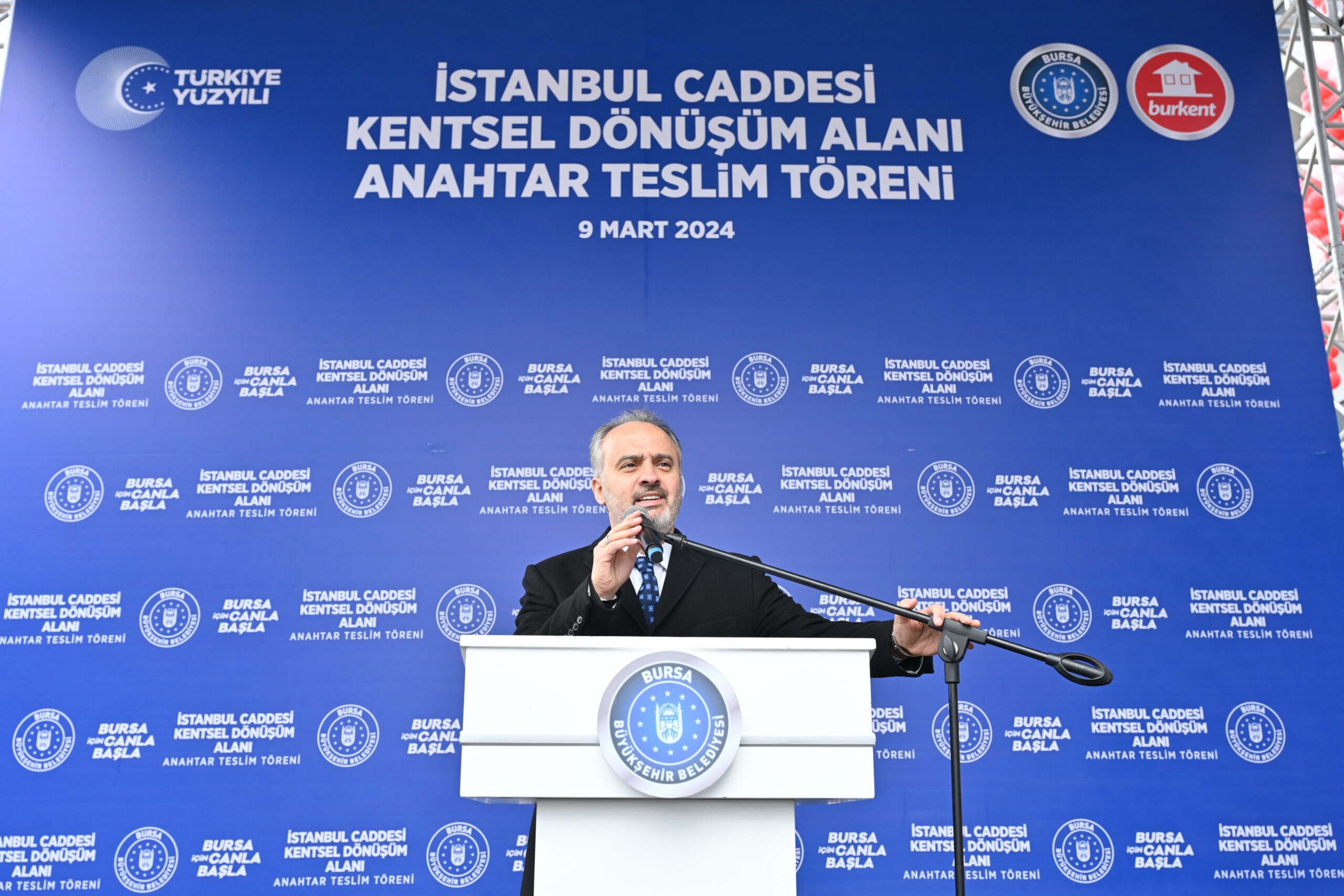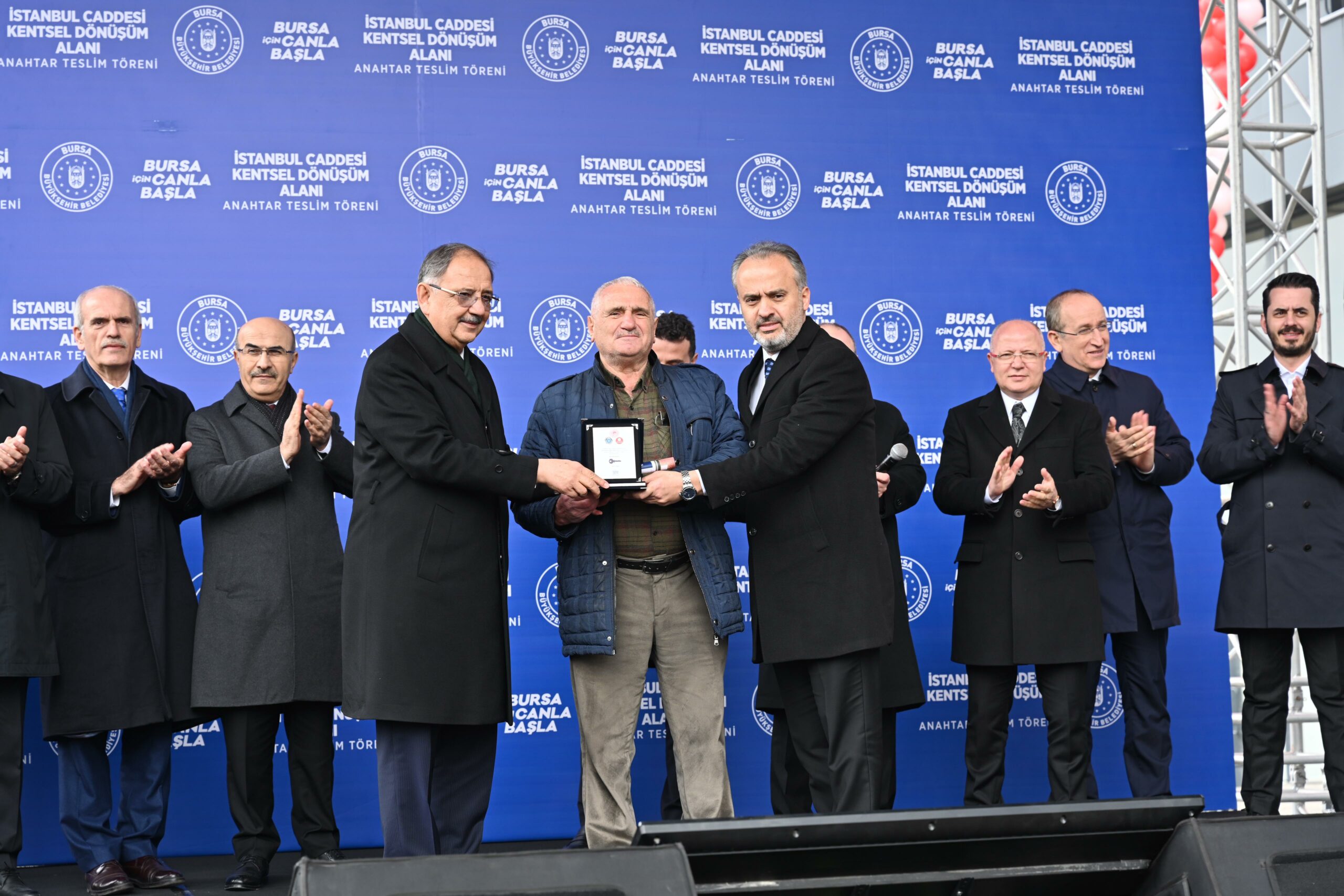 Bursa’nın depreme dirençli kent haline gelmesi amacıyla kentsel dönüşüm projelerini kesintisiz sürdüren Büyükşehir Belediyesi, BURKENT iştiraki tarafından inşaatların yapıldığı İstanbul Caddesi Kentsel Dönüşümünde ilk etapta yer alan konut ve dükkanların anahtarlarını hak sahiplerine teslim etti. Anahtar teslim törenine Çevre, Şehircilik ve İklim Değişikliği Bakanı Mehmet Özhaseki, Bursa Milletvekili Mustafa Varank, Bursa Büyükşehir Belediye Başkanı Alinur Aktaş, Bursa Valisi Mahmut Demirtaş, İller Bankası Genel Müdür Recep Türk, TOKİ Başkanı Ömer Bulut, Ak Parti İl Başkanı Davut Gürkan, MHP İl Başkanı Muhammet Tekin, Osmangazi Belediye Başkanı Mustafa Dündar, Ak Parti Yerel Yönetimlerden Sorumlu Başkan Yardımcısı Recep Altepe ve çok sayıda vatandaş katıldı.