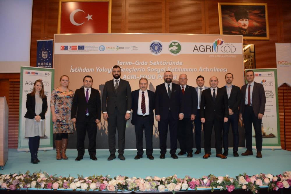 AGRI-FOOD’un kapanış konferansı, Bursa Büyükşehir Belediyesi’nin ev sahipliğinde Merinos Atatürk Kongre ve Kültür Merkezi’nde yapıldı. Toplantıya; Kültür A.Ş Genel Müdürü Fetullah Bingül, Tarım Peyzaj A.Ş Genel Müdürü Semih Polat, Tarımsal Araştırmalar ve Politikalar Genel Müdürlüğü İdari İşler Daire Başkanı Ramazan Bülbül, Bursa Tarım İl Müdürü Hamit Aygül, Bursa Gıda ve Yem Kontrol Merkez Araştırma Enstitüsü Müdürü Yıldıray İstanbullu, Estonya Gıda ve Fermantasyon Teknolojileri Merkezi Yöneticisi Sirli Rosenvald ve İspanya Gıda ve Konservecilik Ulusal Teknoloji Merkezi Yöneticisi Angel Sanmartin katıldı.