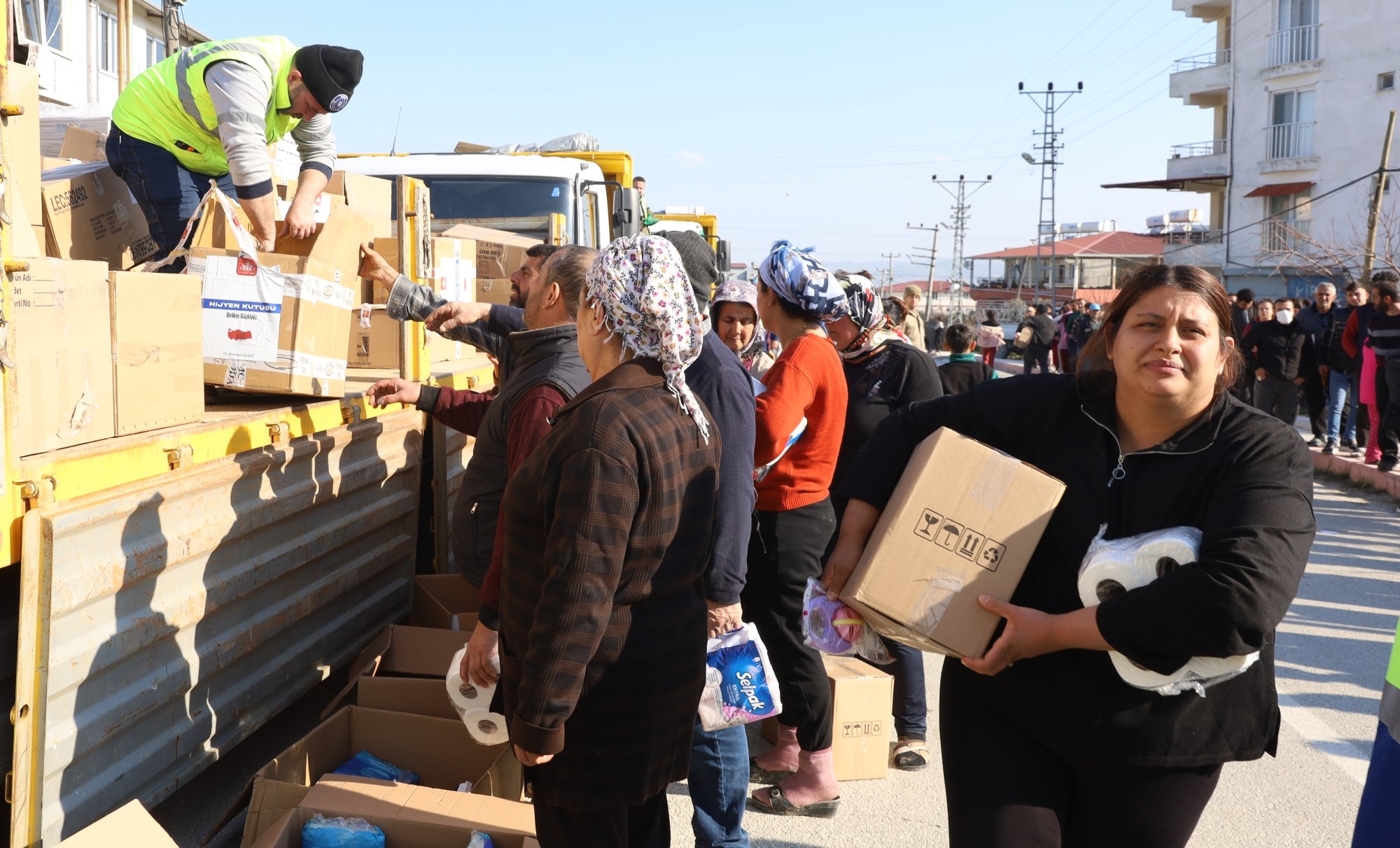 Depremin yaralarını sarmak için ilk günden beri gece gündüz demeden çalışan Bursa Büyükşehir Belediyesi ekipleri, özellikle yardımların ulaştırılması noktasında Hatay’da ayak basmadık yer bırakmıyor. Toplama merkezine tırlarla gelen yardım malzemeleri, Büyükşehir ve bağlı iştiraklerin kamyonlarına yüklenerek, Büyükşehir personeli tarafından ihtiyaç duyulan bölgelere sevk ediliyor. Sabah saatlerinde 4 kamyon yardım malzemesi ile yola çıkan ekipler, Antakya’nın yaklaşık 5 bin nüfuslu Karaali Mahallesi’nde 600 koli erzak, 100 koli hijyen malzemesi, bin adet battaniye ve bin adet çocuk bezi ile oyuncak dağıttı. Yardım dağıtımları, depremin tüm yaraları silinene kadar devam edecek.