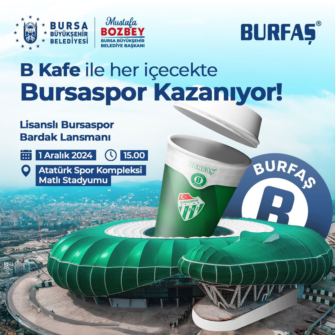 Büyükşehir Belediyesi’nin işlettiği B Kafe’lerde bundan böyle lisanslı Bursaspor bardakları kullanılacak. Yeşil beyazlı kulüp bu kullanımdan ciddi gelir elde edecek.