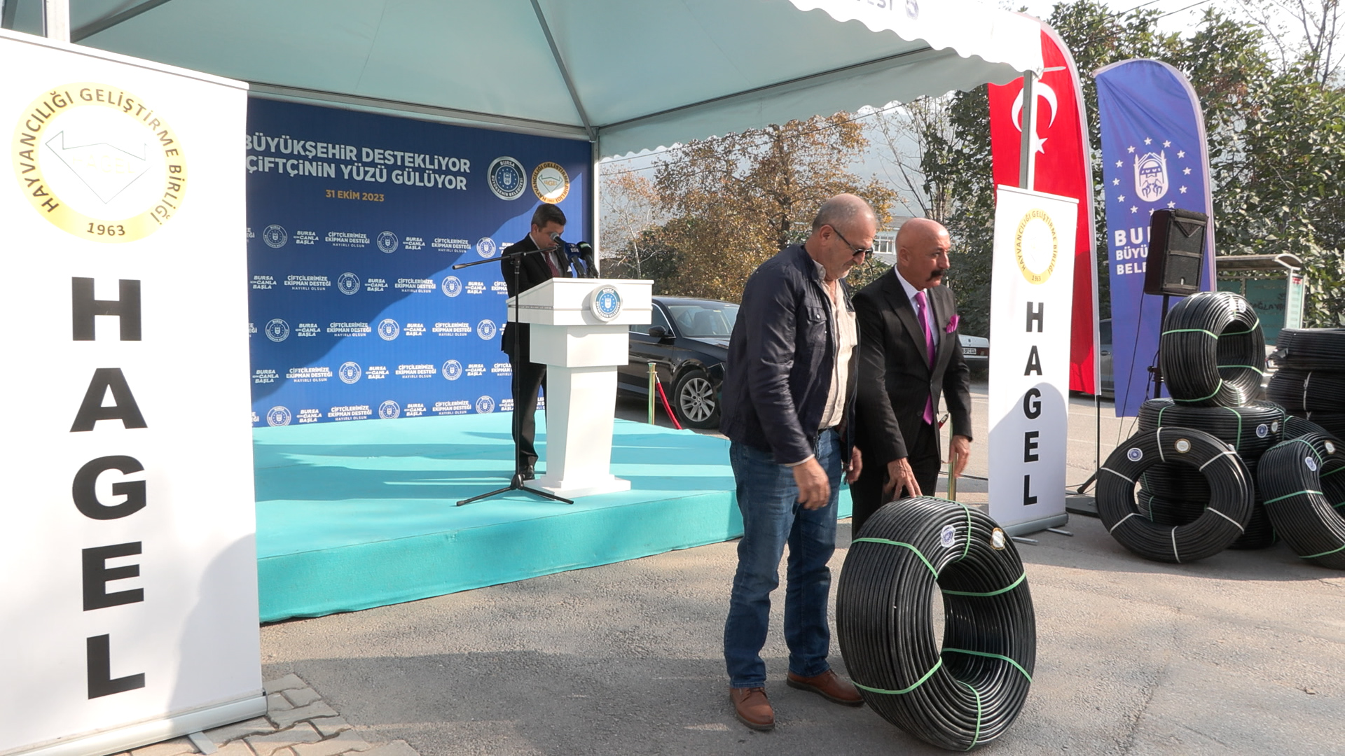 Bursa’da kırsal kalkınmanın sağlanması amacıyla fide-fidan temininden kaliteli üretimin sağlanmasına, ekipman desteğinden ürünlerin satış ve pazarlamasına kadar her alanda çiftçilere katkı sunan Büyükşehir Belediyesi, özellikle su kaynaklarının daha verimli kullanılmasını sağlayacak bir desteğe daha imza attı. Büyükşehir Belediyesi, Bursa İli Hayvancılığı Geliştirme Birliği ve Gemlik İlçe Tarım ve Orman Müdürlüğü ile ortaklaşa gerçekleştirilen proje kapmasında, Gemlik ilçesine bağlı muhtelif mahallelerde 125 çiftçiye 250 top damlalıklı su borusu dağıtımı yapıldı.