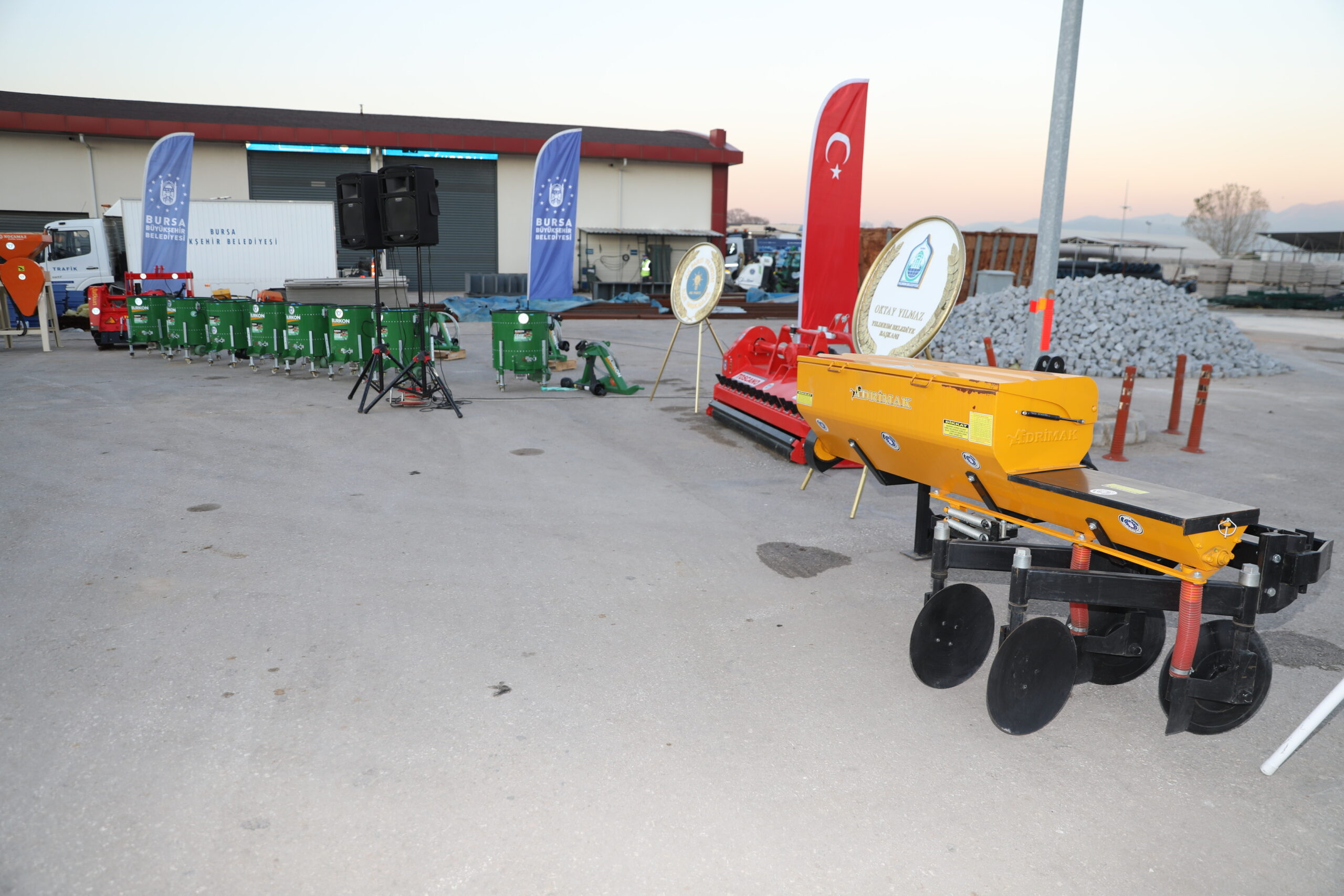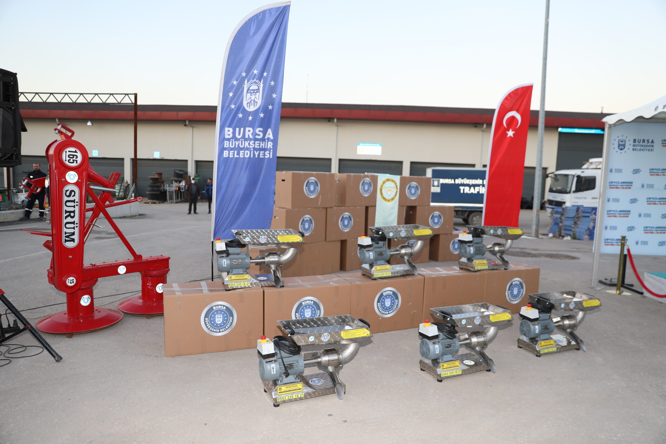 Kırsalda kalkınmayı sağlamak ve çiftçinin daha yüksek kazanç elde etmesi için nitelikli tarım ve hayvancılığı önceleyen Büyükşehir Belediyesi, fide ve fidan dağıtımından ürün toplama merkezlerine kadar her alanda çiftçiyi desteklemeye devam ediyor. Kırsal Hizmetler Daire Başkanlığı ve Bursa İli Hayvancılığı Geliştirme Birliği (HAGEL) tarafından alınan ekipmanlar, düzenlenen törenle Osmangazi, Nilüfer, Mustafakemalpaşa, Harmancık, Orhangazi, Yenişehir, Büyükorhan, Mudanya, Orhaneli ve İznik ilçelerinde ihtiyaç duyulan bölgelere dağıtıldı. Destek kapsamında 8 adet ceviz kırma makinesi, 4 adet ceviz silkeleme makinesi, 13 adet salça makinesi, çilek sırt makinesi, dal parçalama makinesi, gübre atar çizel makinesi, traktör arkası pistonlu çayır ve ot biçme makinesi, helezon yem ezme makinesi, yem kırma makinesi ve taş kırma makinesi çiftçilere teslim edildi. Ayrıca İnegöl ilçesinde Deydinler Mahallesi mera alanının tel çitle çevrilmesi ile Mustafakemalpasa ilçesi Karaoğlanlar, Camandar, Yenibalcık, Keltas ve İlyasçılar mahallelerine mera karışımı tohum desteği verildi.