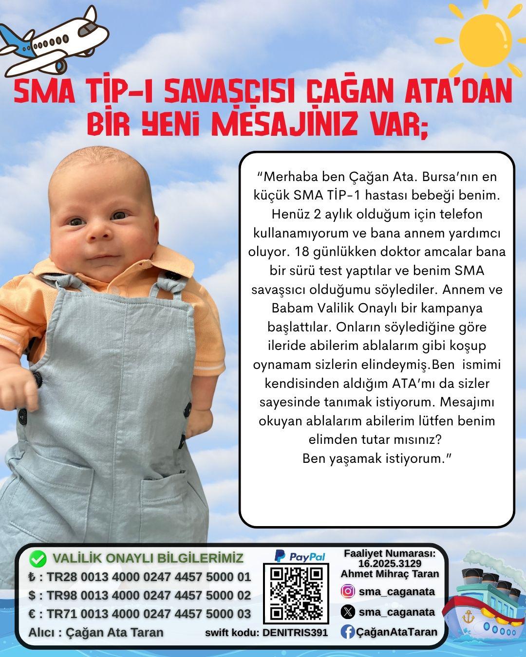 Bursa’da yaşayan Aleyna ve Ahmet Miraç Taran çiftinin oğlu, SMA Tip-1 hastalığı teşhisi konulan Çağan Ata Taran bebeğe Bursaspor’dan önemli bir destek geldi.