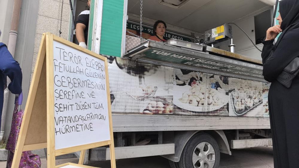 Vatandaşlar lokma dağıtımına yoğun ilgi gösterirken, “Terör elebaşı Fetullah Gülen’in gebermesinin şerefine ve şehit düşen tüm vatandaşlarımızın hürmetine” yazısı dikkat çekti.