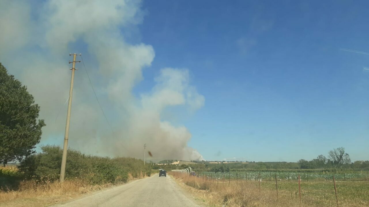 Akköy ile Güllüce köyleri arasındaki zeytinlikte bilinmeyen nedenle yangın çıktı.