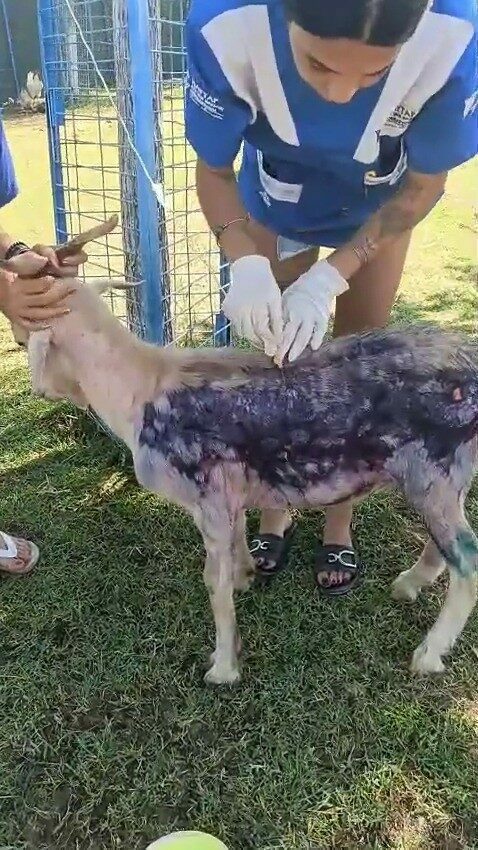 Çanakkale’nin Merkez ilçesi kırsalında çıkan orman yangınında birçok çiftlik hayvanı hayatını kaybederken bir kısım çiftlik hayvanı yaralı olarak kurtarıldı. Yangında alevlerin arasından kaçamayan bir keçi 2. derece yanıklarla hayatta kalmayı başardı. HAYTAP ekipleri tarafından Bursa’daki Emekli Hayvanlar Çiftliği’ne gerilerek buradaki veteriner hekimler tarafından tedavi altına alınan keçi, tedavi sonrası emekli olarak hayatına devam edecek.