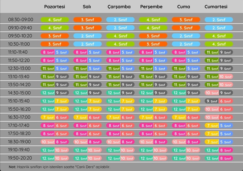 Paylaşımda ayrıca 1’inci sınıflar hariç, 2-12’nci sınıf öğrencilerinin canlı ders programı tablosuna yer verildi.
