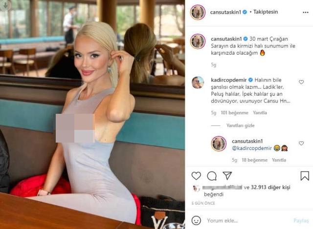 İddialı pozlarıyla gündemden düşmeyen Cansu Taşkın, geçtiğimiz gün elbisesinin içine iç çamaşır giymeden poz verdi. Taşkın’ın cüretkar pozunun yanı sıra oyuncu Kadir Çöpdemir’in yaptığı yorum olay oldu.