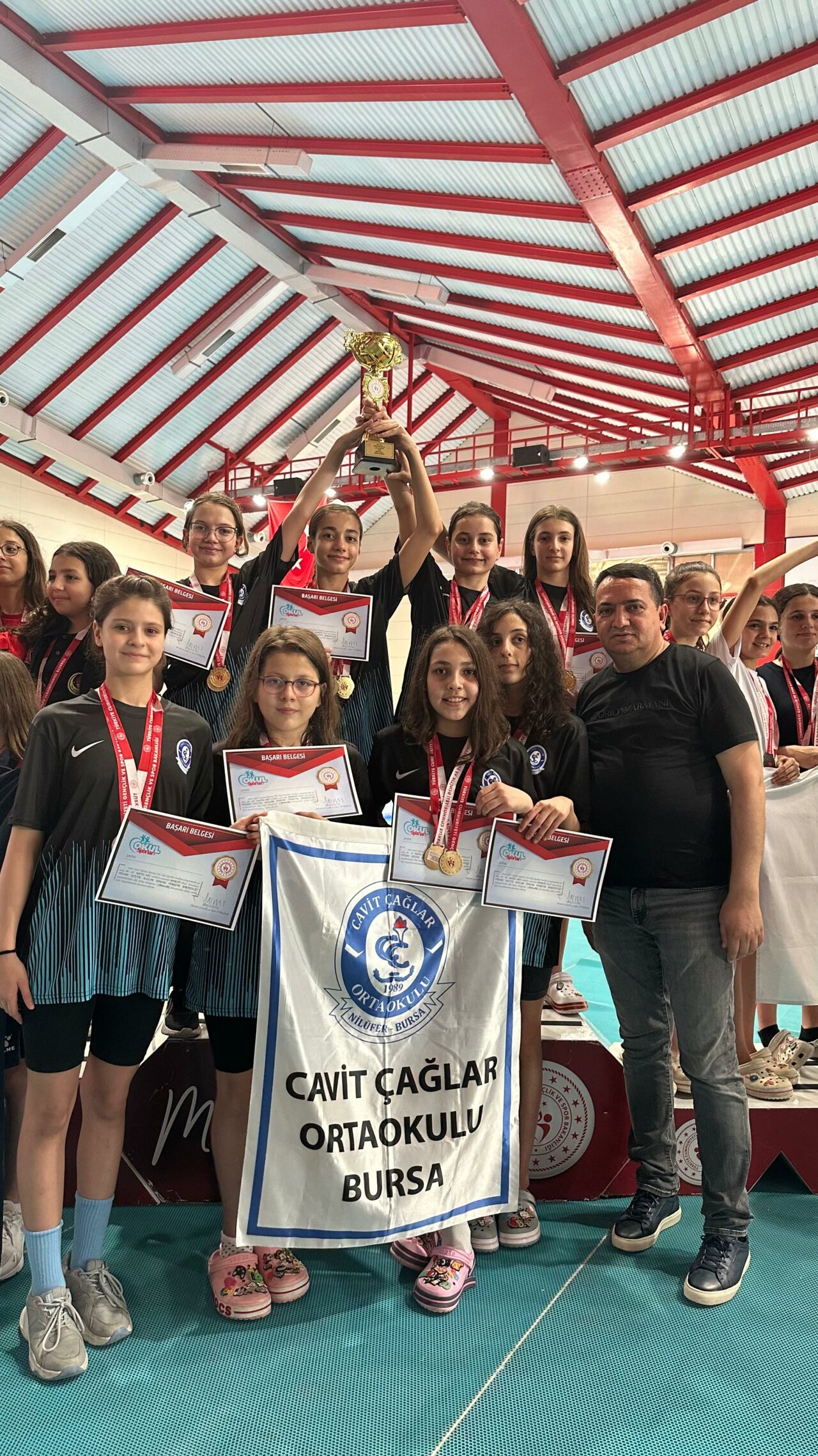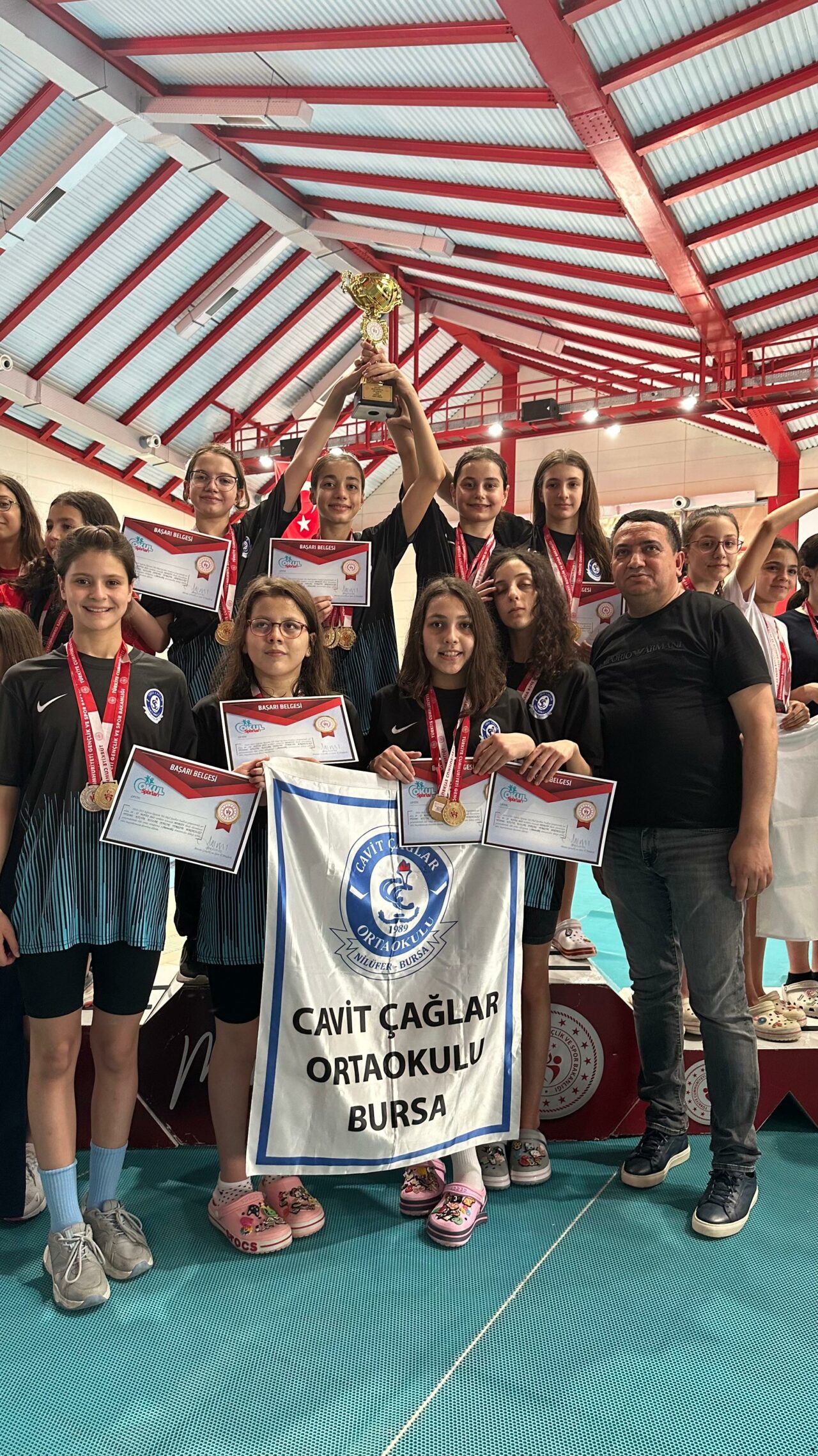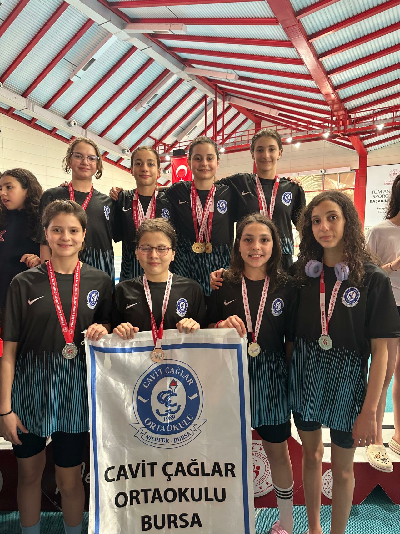 Mersin’de 24-25 Mayıs tarihlerinde yapılan Okul Sporları Küçükler Türkiye Yüzme Şampiyonası’nda Nilüfer ilçesinde bulunan Cavit Çağlar Ortaokulu Kız Takımı şampiyon oldu.