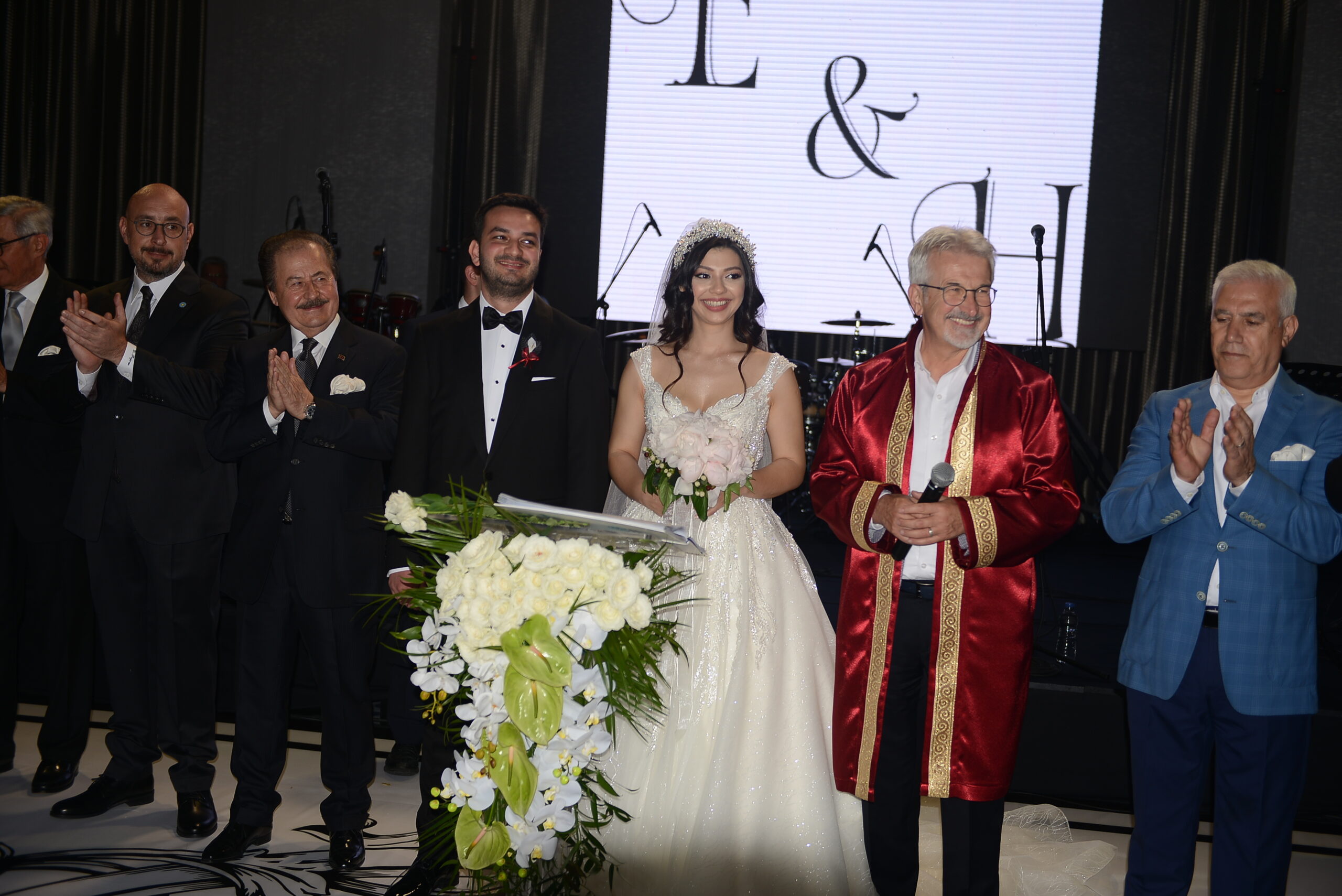 BTSO Eski Meclis Başkanı Burhan Vatan’ın kızı Ece Vatan’ın hayatını Hüsamettin Dinçeli’yle birleştirdiği görkemli gecede nikah şahidi olan Devlet eski Bakanı Cavit Çağlar, eşi Nursel Çağlar’la evliliklerinde yarım asrı devirdiğini hatırlattığı çiçeği burnunda çifte kendileri gibi mutlu olmalarını diledi.