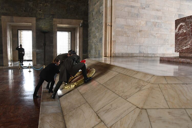 Çağdaş Eğitim Kooperatifi Yönetim Kurulu Başkanı Nihan Alpay’ın liderliğindeki ÇEK heyetinin Aslanlı Yoldan geçerek Anıtkabir’e giriş yapmasının ardından Atatürk’ün mozolesine çelenk sunmasıyla başlayan tören, Ata’mızın huzurunda gerçekleştirilen saygı duruşuyla devam etti. Başkan Nihan Alpay ve beraberindeki heyet daha sonra Misak-ı Milli Kulesi’ne geçti.