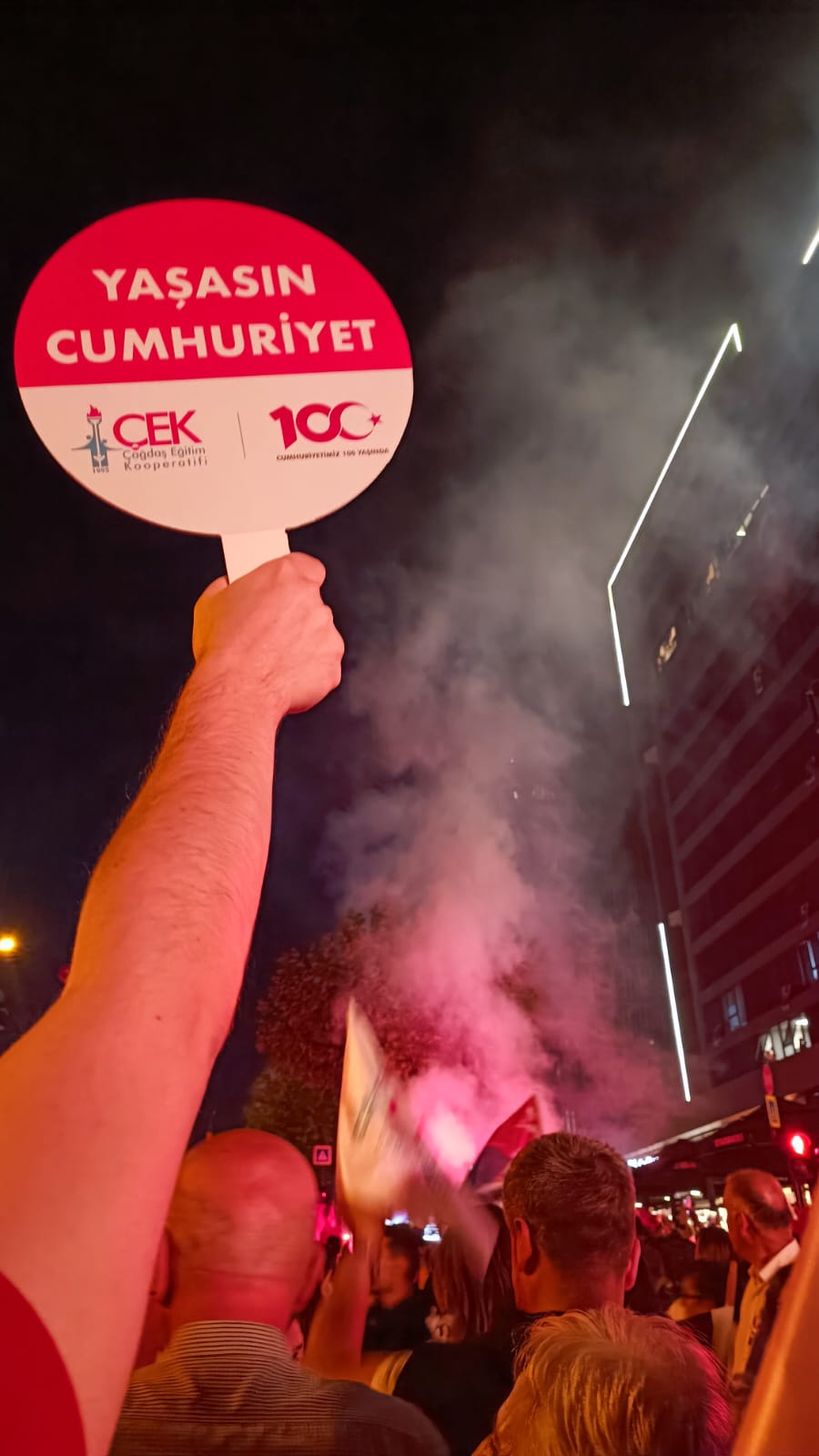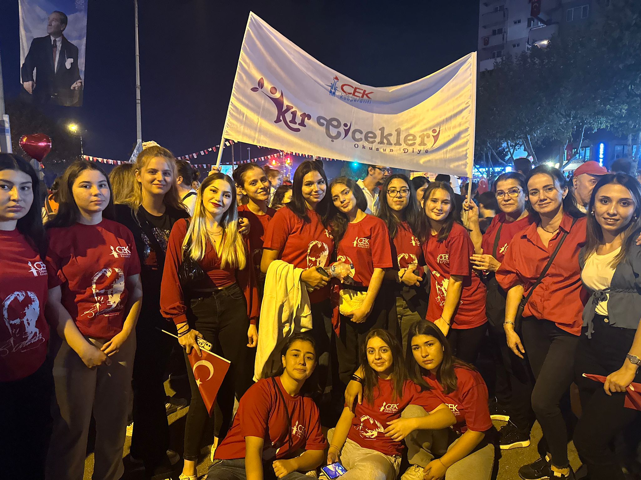 ÇEK ailesi, 100 binlerce Cumhuriyet sevdalısının Fatih Sultan Mehmet Bulvarı’na aktığı ve coşkunun doruğa ulaştığı geceye renk kattı, çalınan parçalara coşkulu bir şekilde eşlik etti.