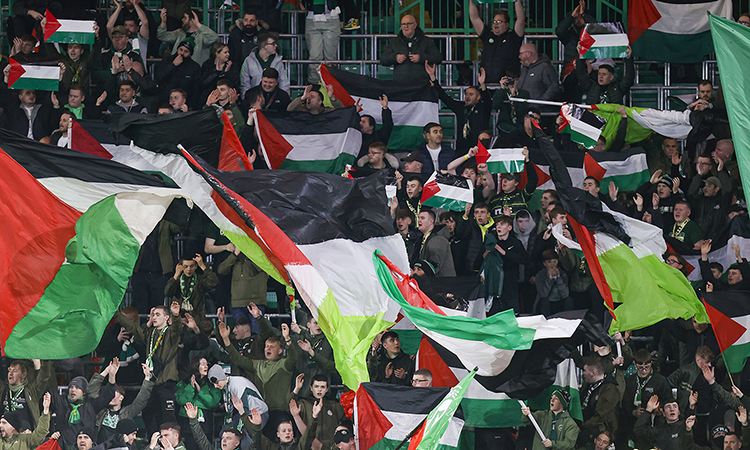 Lider Celtic’in 7 Ekim’de konuk ettiği ve 3-1 kazandığı Kilmarnock maçında seyircisi, “Filistin’e özgürlük” ve “Direnenler kazanacak” afişlerini tribünden açtı. Bu gerekçeyle taraftarların bir kısmının geçen hafta sonu Celtic’in deplasmanda 4-1 kazandığı Hearts maçında deplasman tribününe alınması, federasyon tarafından yasaklandı.