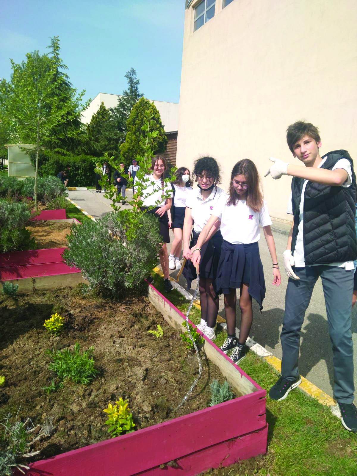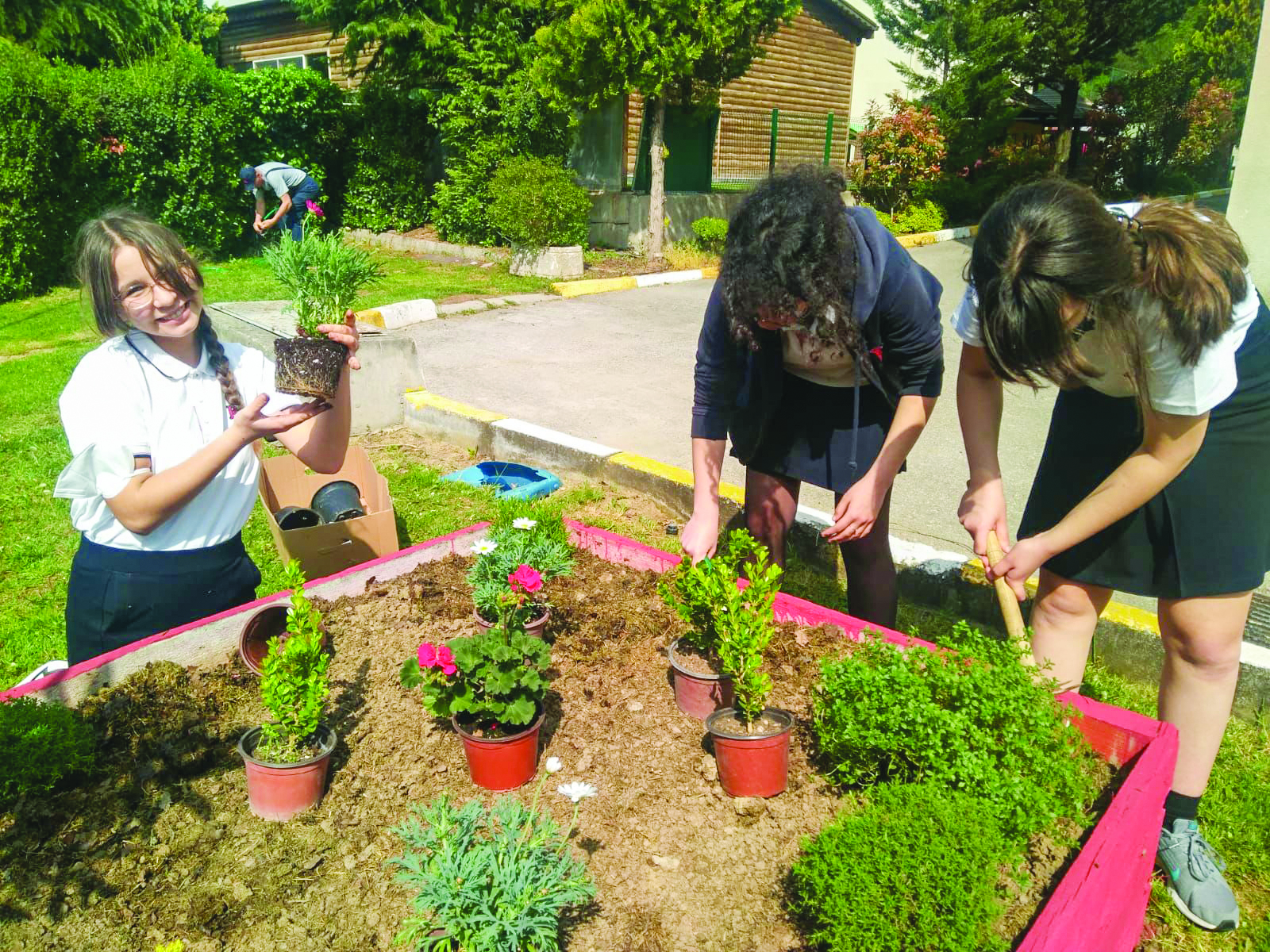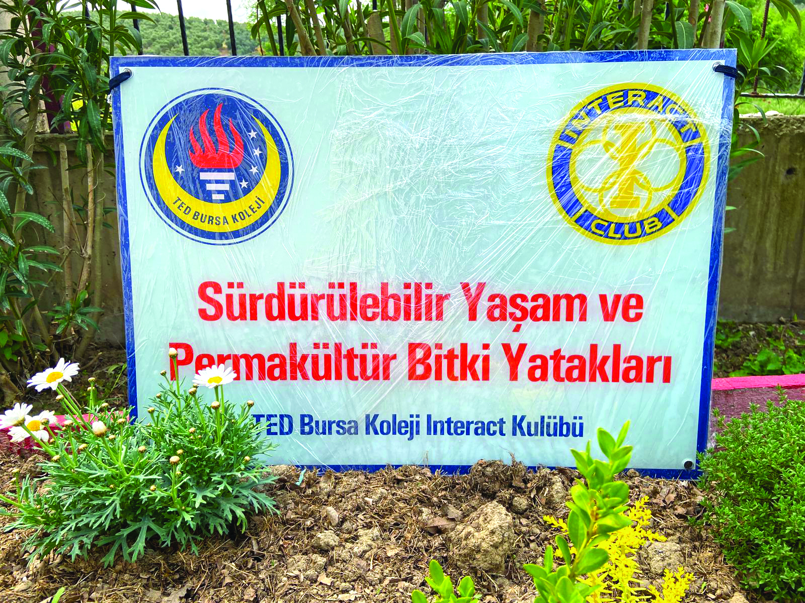 Tabii götürüyoruz, örneğin Mudanya’da bir plajdaki çöpleri öğrencilerimizle birlikte topladık. Ayrıca, 3 yıl önce başladığımız ve sürdürdüğümüz, lise ve anaokulu öğrencilerimizin ortak çalıştığı bir permakültür projemiz var. Kampüsümüzde permakültür yatakları oluşturduk. Burada öğrenciler kendi atık gıda malzemelerinden kompost topraklarını getirip tarım konusunda bilinçleniyorlar. Tohum ekip büyümesini takip ediyorlar. Hatta ürün veren bazı bitkiler de oluyor. Toprakla haşır neşir olan öğrenciler daha mutlu bireylere dönüşüyorlar. Lise ‘Interact’ kulübü öğrencilerimiz bu projeyi başlattı ve şimdi de raporlayıp ortaokuldaki arkadaşları için bilgilendirme sunumları ve posterler yapıyorlar.