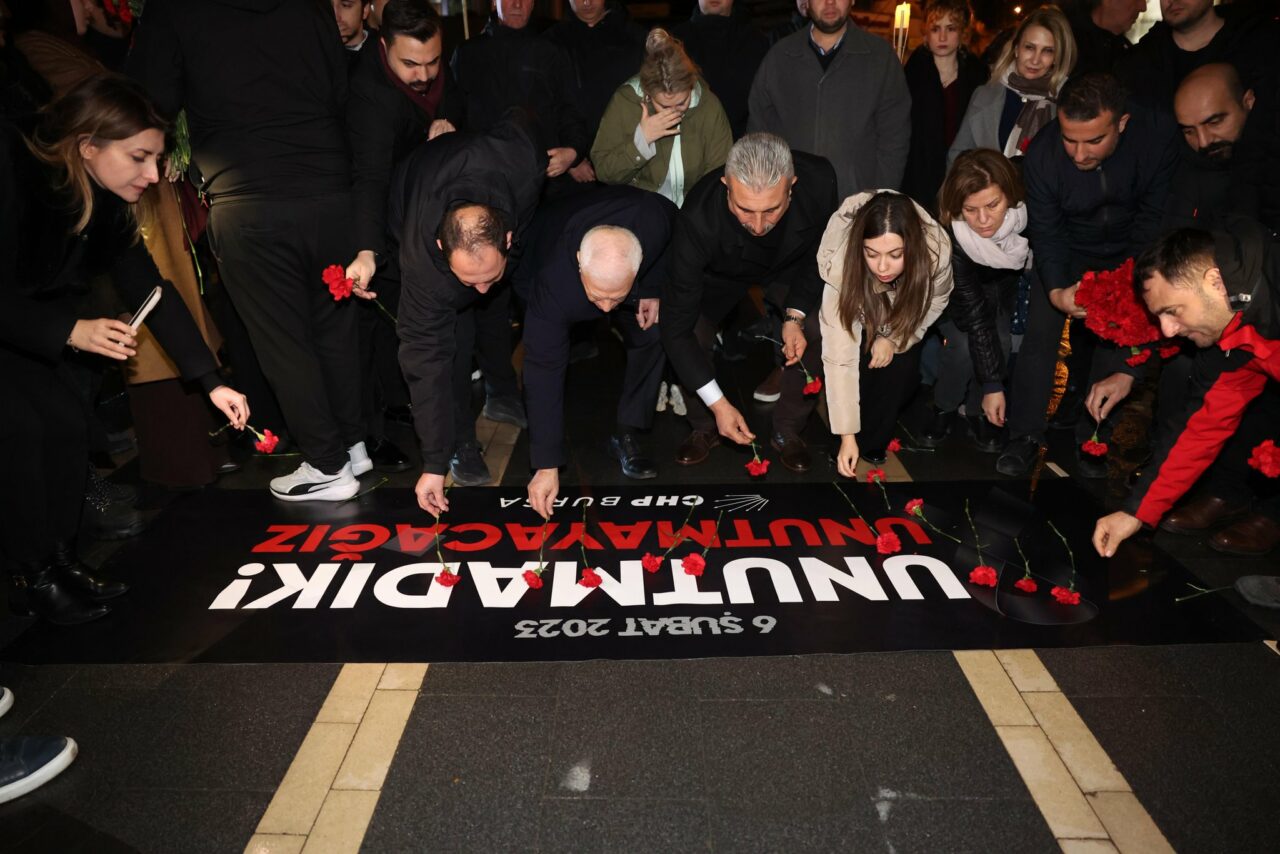 Kent Meydanı’nda gerçekleştirilen programda, depremin meydana geldiği saat olan 04.17’de sirenler çalınarak, saygı duruşunda bulunuldu, Depremde yaşamını yitiren on binlerce yurttaş, rahmet ve saygıyla anıldı. Anma programına CHP Bursa İl Başkanı Nihat Yeşiltaş, CHP Parti Meclisi Üyesi Canan Taşer, Bursa Büyükşehir Belediye Başkanı Mustafa Bozbey, İl Kadın Kolları Başkanı Nigar Bölüker, İl Gençlik Kolları Başkanı Berkcan Bora, partililer ve çok sayıda vatandaş katıldı.
