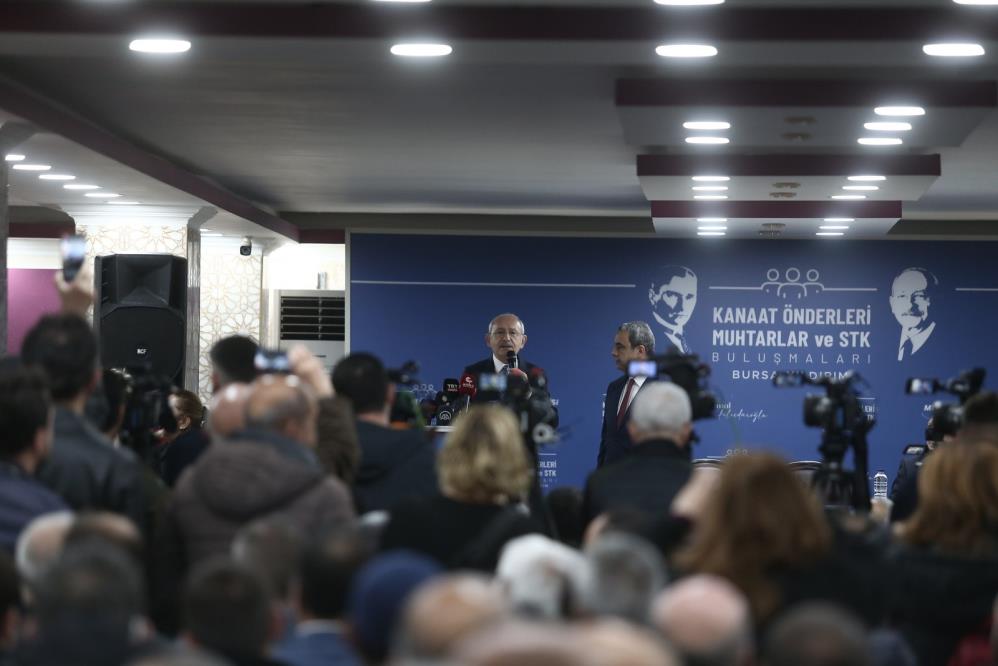 Cumhuriyet Halk Partisi (CHP) Genel Başkanı Kemal Kılıçdaroğlu, Bursa’nın Yıldırım ilçesinde bir düğün salonunda kanaat önderleri, muhtarlar ve sivil toplum kuruluşu temsilcileri ile bir araya geldi. Kılıçdaroğlu, Yıldırım’da CHP’nin oyunun düşük olmasının kendi kabahatleri olduğunu ifade ederek, “Yıldırım’da oyumuz düşükse bu bizim kabahatimiz. Sen gittin sofrasına oturdun, çayını içtin oy mu vermediler. Gideceksin oturacaksınız, konuşacaksınız derdini dinleyeceksiniz. Kısaca helalleşeceksiniz. Ankara’da oturduk nutuklar attık bize oy verin dedik. Biz gideceğiz sorunları dinleyip, çözüm varsa anlattıktan sonra oy isteyeceksin, vatandaş verip vermemekte özgürdür. Önce bir düşünmesine imkan vereceksin” dedi.